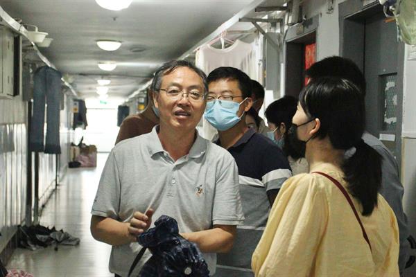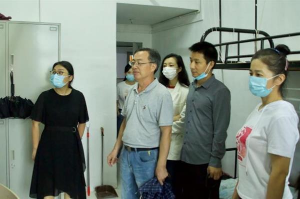 9月13日下午,学院党总支书记彭云波、常务副院长郑怡文、党总支专职副书记许瑛及全体班主任、辅导员,走访东冠校区和立志园学生寝室,对同学们的到来表示热烈欢迎,在亲切交流中了解同学们的入住情况和实际需求。