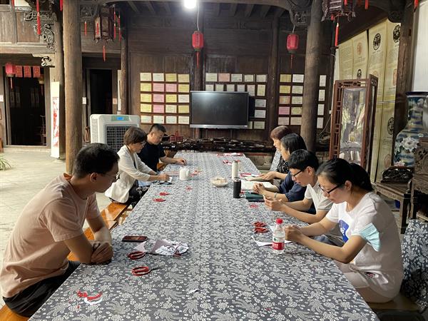 金华市剪纸博物馆是由高级工艺美术师、浙江省级工艺美术大师、省级非遗“金华剪纸”传承人詹东明创办。自2011年成立以来,一直坚持免费向公众开放,积极履行社会责任,以展示、宣传、研究、保护与传承剪纸非遗为立馆宗旨。馆藏有詹东明先生的3500多件作品,以其体量之大、题材之广泛而著称。在交流过程中,馆方向我们介绍了民间非遗传承之路的真实现状,也讲述了目前非遗传承所面临的人才匮乏、支撑不强等发展困境,双方也就未来的学生实践、展览交流等事项达成了初步合作意向。