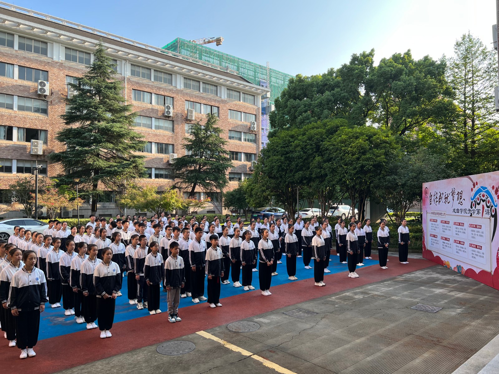 全国职业院校技能大赛中职组艺术专业技能(戏曲表演)赛项比赛一等奖获得者,19小百花班陈子心带领全体戏曲学院学子宣誓遵守《中等职业学校学生公约》。同学们高举右手,紧握拳头,整齐肃立,发出铿锵有力的青春誓言。各班学生代表在公约展板上郑重签字,承诺自觉践行公约,共建文明校园。