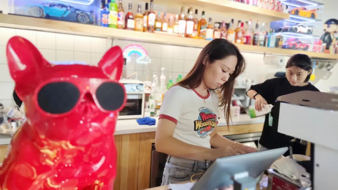 咖啡馆内属于音乐的小角落音符流淌,店内的手工乐高墙、清新小庭院、欢动的水族世界无一不在认真编织何轶婧的艺术咖啡创业梦。