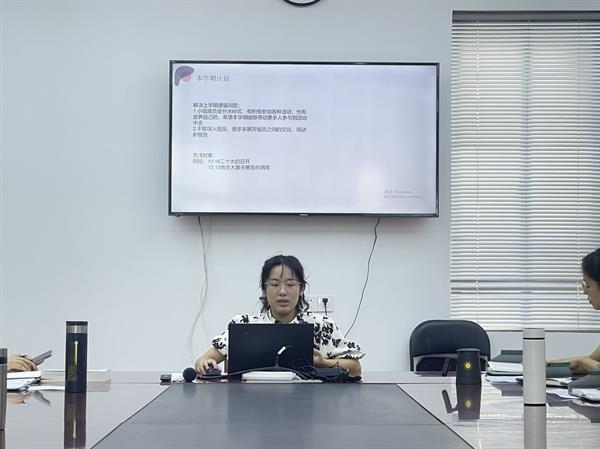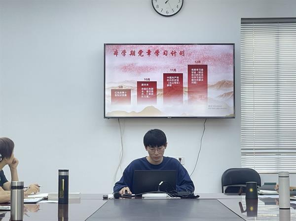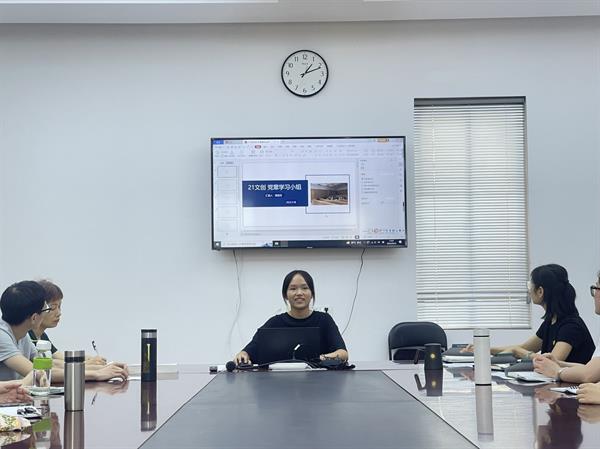 党总支专职副书记王筱芽对党章学习小组“学”风引领行动的学习形式和具体要求进行重点介绍。各组长逐一汇报上学期党章学习小组的学习内容、学习形式以及学习成效,立足党史理论学习与时事专业相结合、自身发展与学做结合等理念,设计安排本学期的理论学习、时事学习、知识竞赛、社会实践等模块,不断增强学习教育针对性和实效性。