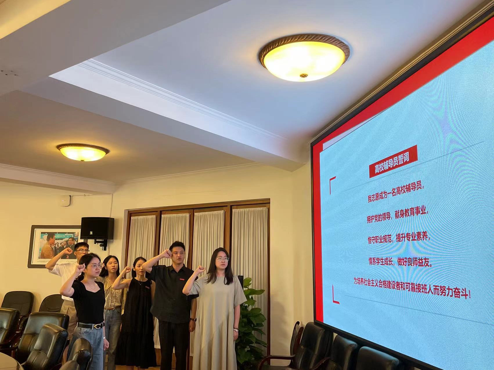 吴颖带领新入职辅导员进行庄严的入职宣誓,希望他们能够牢记为党育人、为国育才的初心使命,情系学生成长,忠于职守,在新的岗位上不断升华奋斗精神和实现个人价值追求。