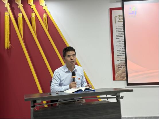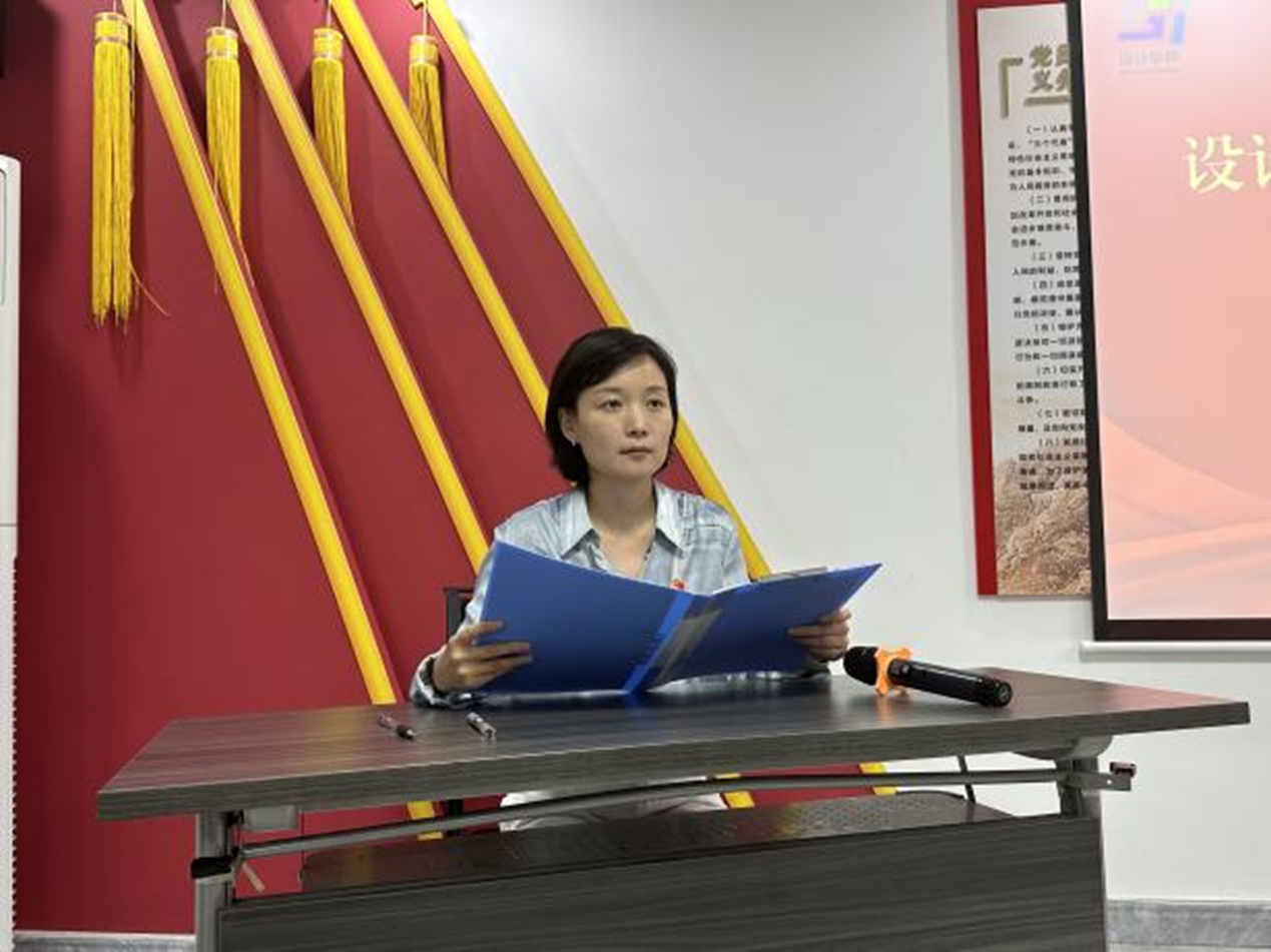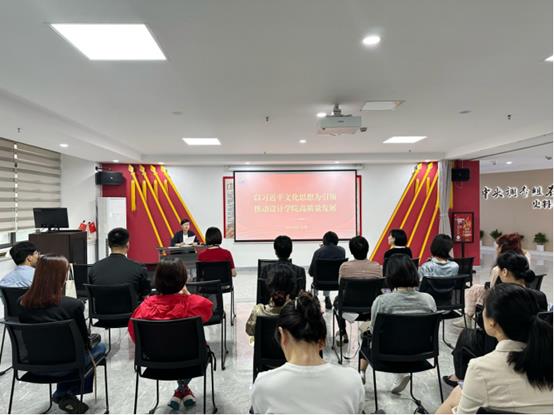 设计学院党总支书记汪琳以《以习近平文化思想为引领 推动设计学院高质量发展》为题作专题党课。汪琳指出,习近平文化思想既有文化理论观点上的创新和突破,又有文化工作布局上的部署要求,明体达用、体用贯通,明确了新时代文化建设的路线图和任务书,标志着我们党对中国特色社会主义文化建设规律的认识达到了新高度,表明我们党的历史自信、文化自信达到了新高度,并在我国社会主义文化建设中展现出了强大伟力,为做好新时代新征程宣传思想文化工作、担负起新的文化使命提供了强大思想武器和科学行动指南。她强调,要紧紧围绕学习贯彻习近平文化思想,围绕贯彻党的二十大关于文化建设的战略部署,切实增强做好新时代新征程宣传思想文化工作的责任感使命感,推动各项工作落地见效。坚持不懈用习近平新时代中国特色社会主义思想凝心铸魂,在真学真懂真信真用、深化内化转化上下功夫。