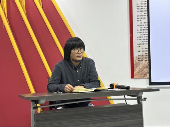 设计学院副院长何佳玮从“提出坚定文化自信作为文化建设的前提”“提出建设中华民族现代文明作为新时代新的文化使命的重要内容”“提出‘两个结合’作为文化建设的方法”“提出全球文明倡议推动人类文明发展”四个方面领学《习近平文化思想的原创性贡献》。习近平文化思想的原创性贡献,集中体现了新时代文化建设的中国经验、中国智慧,是理论创新和实践创新、民族立场和世界情怀的有机统一,标志着党对中国特色社会主义文化建设规律的认识达到了新高度,表明党的历史自信、文化自信达到了新高度。