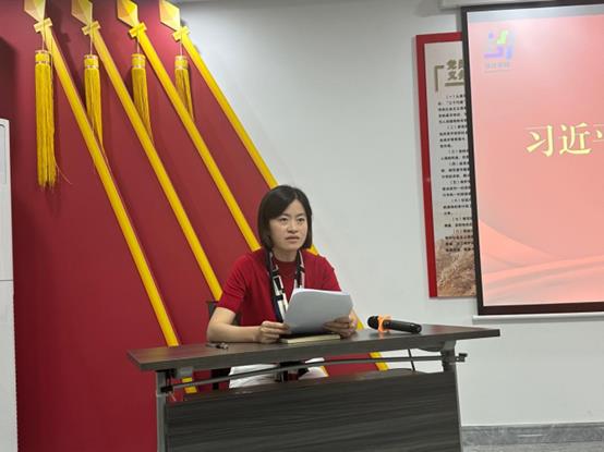 设计学院办公室主任陈蔚、党总支委员贾娜娜分别领学《习近平主持召开进一步推动长江经济带高质量发展座谈会 强调进一步推动长江经济带高质量发展更好支撑和服务中国式现代化》《习近平:开辟马克思主义中国化时代化新境界》。
