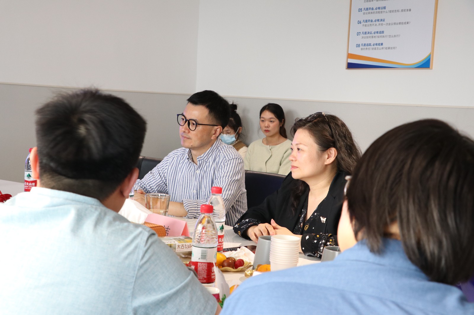 嘉诺创始人兼CEO程伟、合伙人党支部书记王祎带领施俊天一行参观了公司的整体布局、业务区块,并向在场的各位介绍了公司的成长经历和未来发展规划。同时,施俊天一行看望并问候了在公司任职的手工艺学院20级毕业生左彤彤,与她进行亲切的交谈,希望她能将在浙艺所学的知识充分发挥到工作岗位上,成为一名独当一面的设计师,为接下来的校企合作项目发挥桥梁作用。