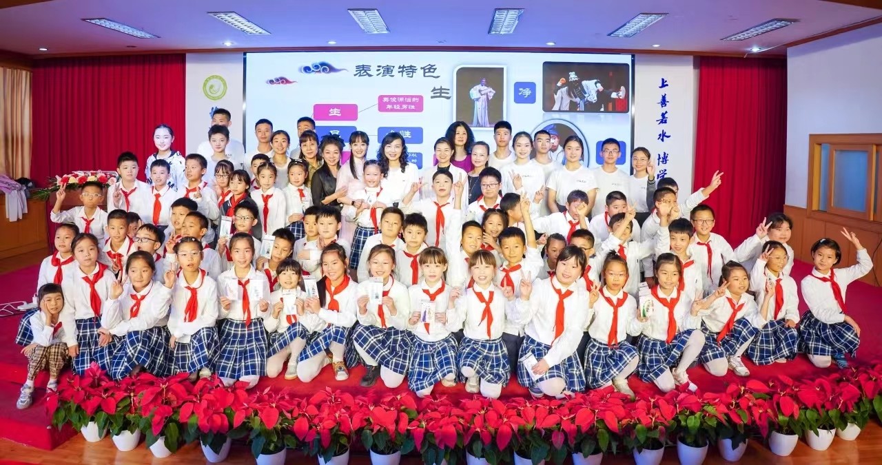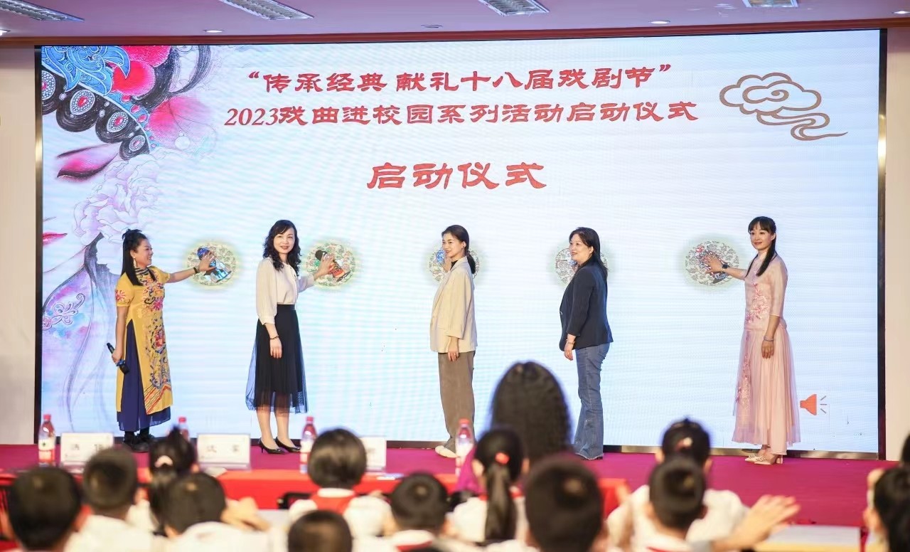 周伟君为京都小学授校外实训基地牌,为两校戏曲育人合作展开全新画卷。沈蒙宣布“2023戏曲进校园系列活动”正式启动。