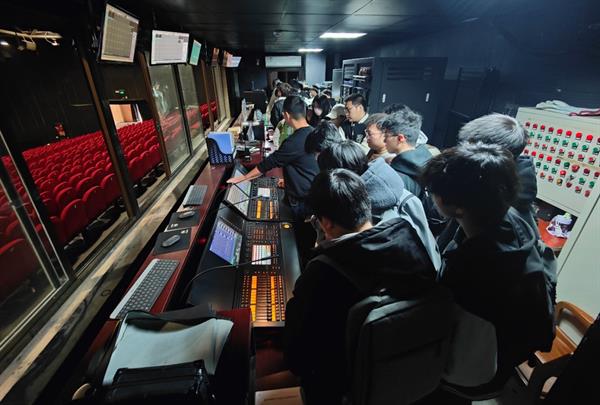 同学们在灯光老师的带领下领略光与色之间的奥秘、三原色的巧妙运用以及灯光的灵活调节,使同学们的专业学习更加贴近行业应用。现场,同学们通过操作调光台,初步体验了灯光艺术的魅力,了解了调光的方法。