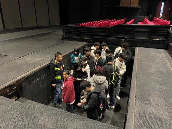 在机械老师的带领下,同学们深入舞台内部,一窥各种机械设备的“真容”,了解各种机械设备的运动原理。机械的精巧与别具一格令同学们叹为观止,舞台在机械的作用下实现快速换景、呈现多种特殊效果,带给了同学们震撼的视觉效果。