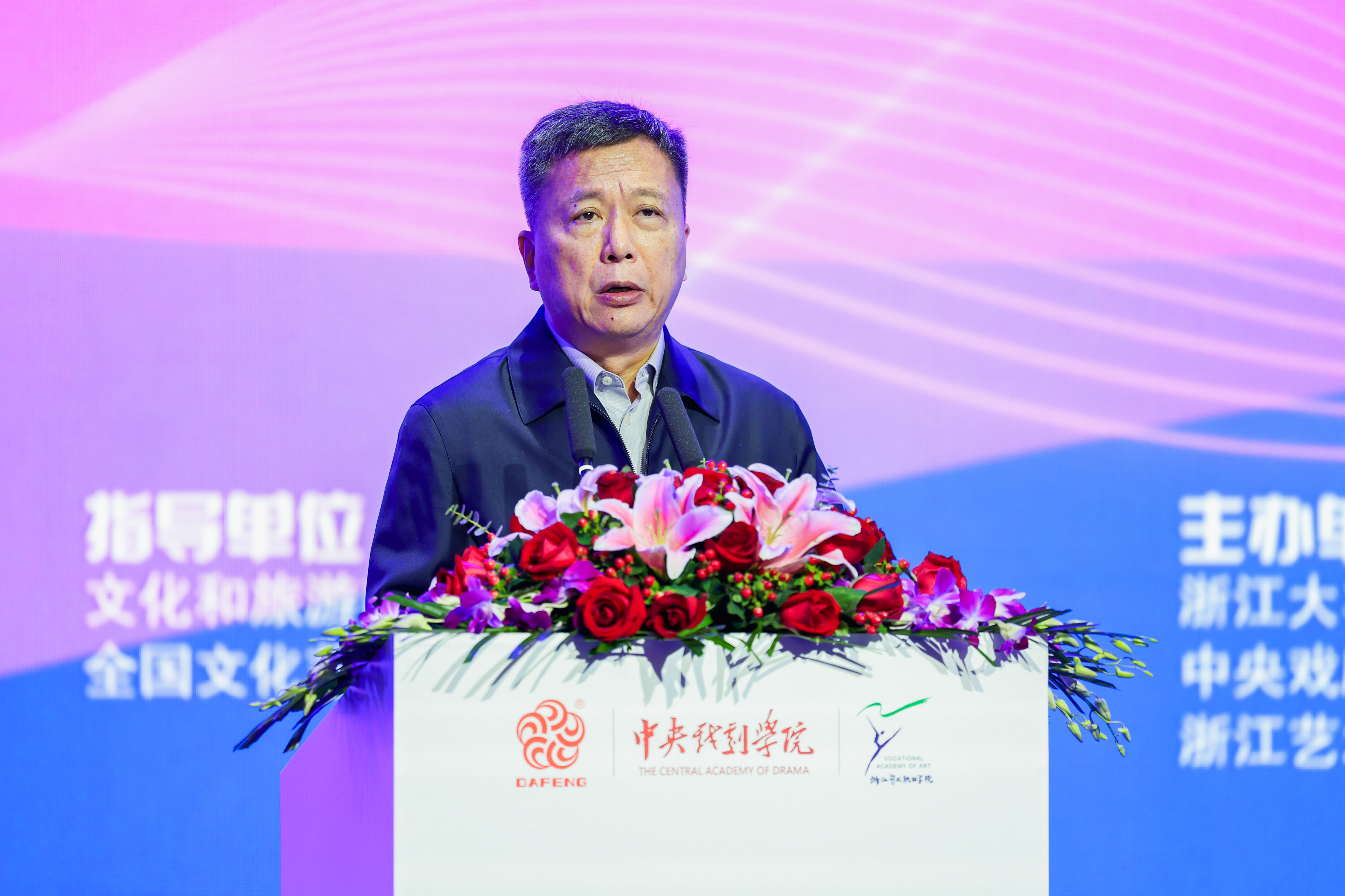 陶诚在致辞中指出,行业产教融合共同体是新时代我国现代职业教育体系“一体、两翼、五重点”改革的重要载体之一,在深化职业教育改革中发挥着重要作用。成立舞台美术行业产教融合共同体是贯彻党的二十大精神、落实好“办好人民满意的教育”“繁荣发展文化事业和文化产业”要求的具体举措,要聚焦三点做好共同体的建设发展:一是统一目标。围绕打造“主体融合、要素聚集、资源共享、持久发展”舞美行业产业生态圈,促进政府、行业、院校、院团、剧场及产业单位产教协作融合,激发政校行企协同创新,形成合作共赢、互惠互利的有效机制,为营造舞台表演艺术及舞台美术传承发展的良好生态作出贡献。二是加强联动。协调好科研院所、普通高校和职业学校开展有组织、成体系、成规模、成建制的人才培养、科学研究和社会服务,在推进联动方面起到桥梁纽带作用,打造产教融合共同体的示范标杆。三是开放创新。秉持开放创新的精神,强化集体协作和联合攻关,坚持优势互补、互惠互利,构建新型科研组织模式和创新成果转化模式,不断推进舞美领域科技研发、技术创新和产业转化,积极为文化艺术职业教育服务行业产业发展积累新经验,提供新动能。