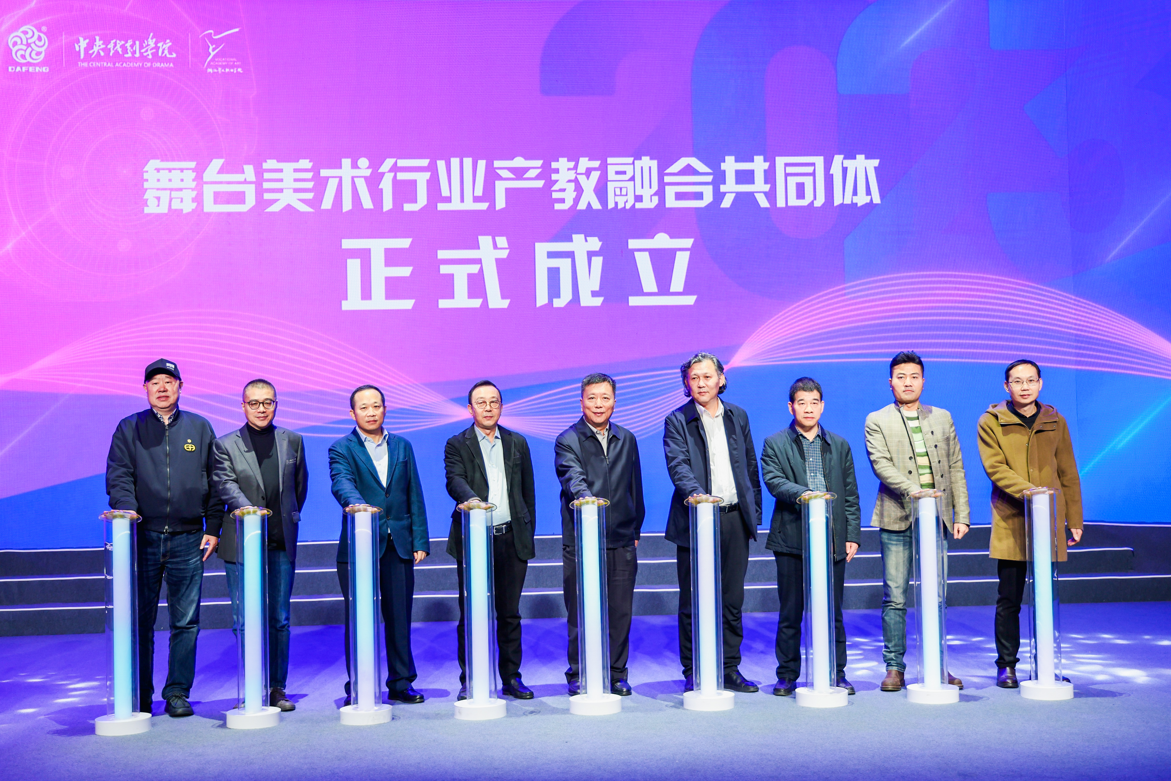 与会领导与嘉宾共同按下启动键,舞台美术行业产教融合共同体正式成立。