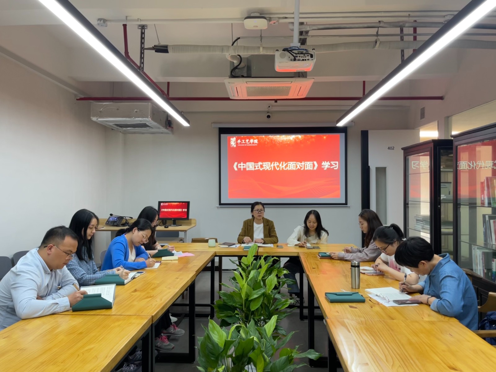 10月30日中午,手工艺学院组织全体党员集中学习《中国式现代化面对面》,进一步把学习贯彻习近平新时代中国特色社会主义思想和党的二十大精神引向深入,引领党员同志深刻理解中国式现代化的鲜明特色和丰富内涵,要求党员在日常的学习和实践中坚守思想根脉、紧扣理论深度、坚持守正创新,团结一心抓住发展机遇,助力学院高质量发展。
