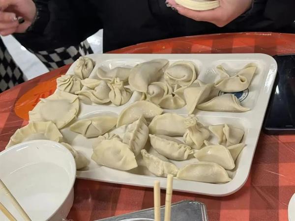 现场开展包饺子比赛,党员教师与学生们积极参与,气氛热烈。据了解,很多同学并没有包饺子的经验,但在党员教师的带领下很快就上手了。虽然因地域差异和熟练程度的不同使包出来的饺子形态各异,但大家都乐在其中。