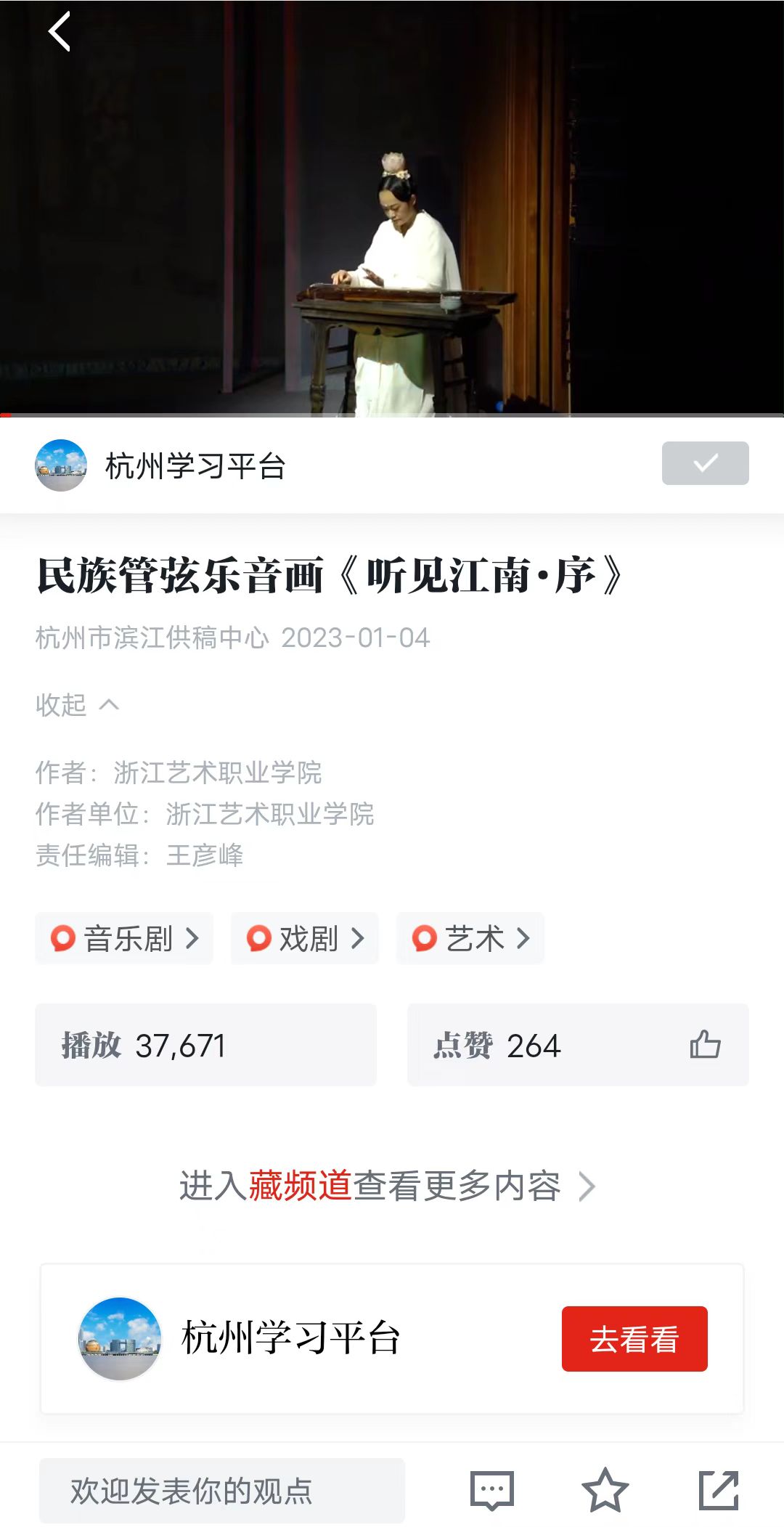 学习强国全国平台:民族管弦乐音画《听见江南·序》
