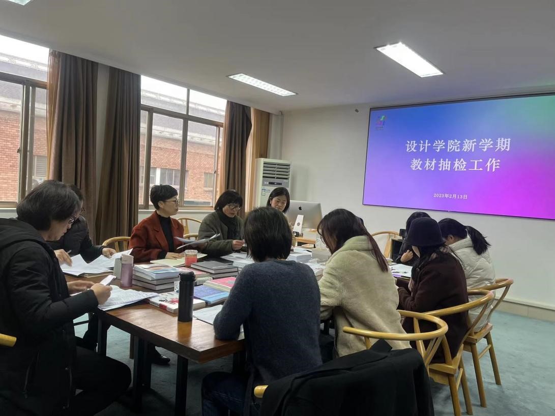 为贯彻党的教育方针,落实立德树人根本任务,规范教材选用及教材管理,2月13日,在各课程授课教师对征订的教材开展自查的基础上,设计学院组织领导班子、专业教研室主任开展2023年春季学期的教材集中抽检工作。