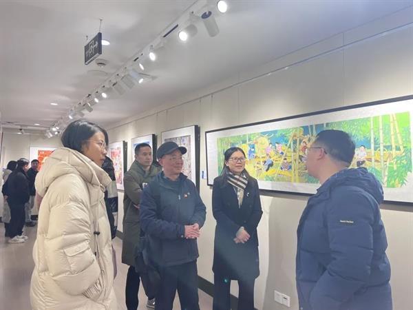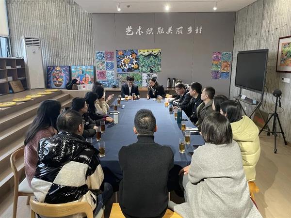 在校地合作交流活动中,沟溪乡党委书记陈建锋同演教学院党员教师进行了深入交流。陈建锋对沟溪乡同我院校地合作的成果进行了回顾和肯定,就如何高质量进行校地深度融合,高效转化校地合成果等一系列问题进行了务实交流和经验分享。党员教师们从自身专业出发,结合沟溪特色提出了具有建设性的建议。表演艺术教研室党员教师杨晓浤和齐帅还将其为沟溪创作的文艺作品进行了展示,获得了与会领导的充分肯定。交流结束后,在陈建锋等人的带领下,一行人参观了余东村画村、中国乡村美术馆和当地特色文化产业自营店,通过实地走访对当地发展特色产业和乡村文化有了更为深入的了解。