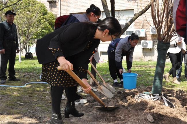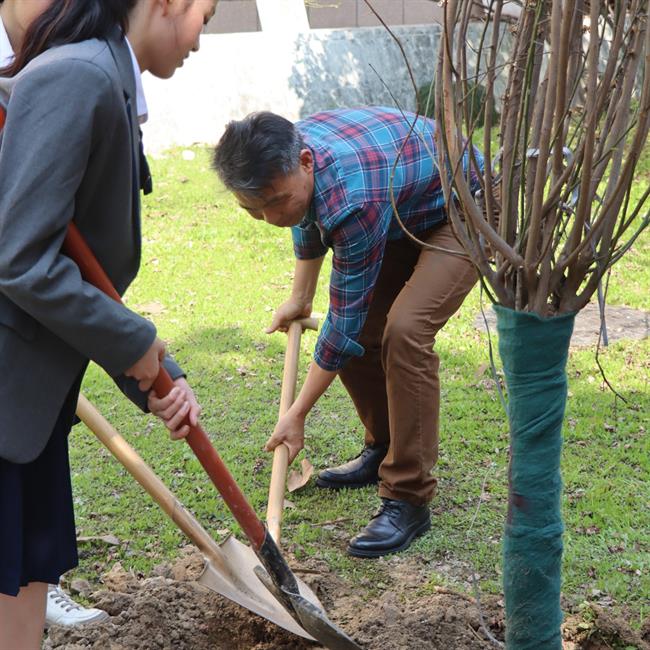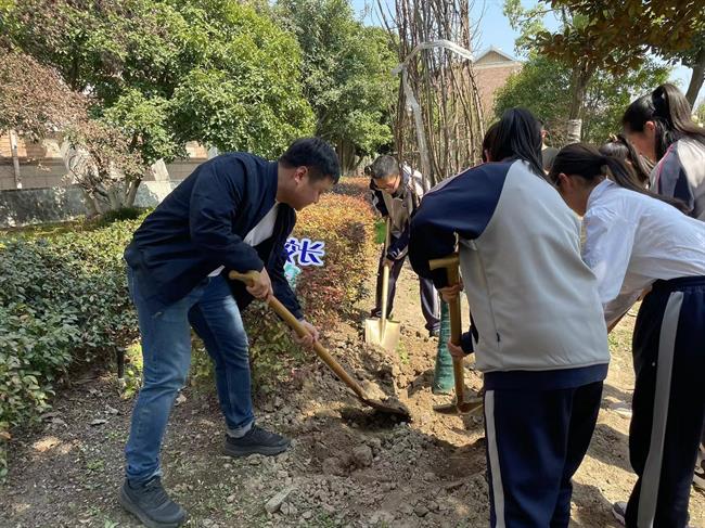 在第45个植树节来临之际,结合省绿委办、亚组委等5部门的通知要求和我校创建低碳学校的目标任务,宣传展示杭州第19届亚运会“绿色、智能、 节俭、文明”的办会理念,助力绿色亚运,3月10日学工部开展“我为亚运种棵树 携手绿意向未来”劳动主题实践教育活动暨第11期书记校长有约活动,院长、党委副书记黄杭娟,副院长沈军甫,学工部副部长吴颖,资产管理处副处长张健等协同中专22级的学生代表们在校劳动实践场地共同参与植树活动,以师生共育的方式为校园增添新绿,为共创绿色低碳校园贡献青年力量。