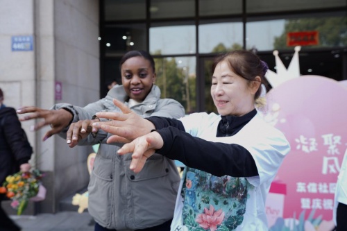 活动外场音乐响起,东信社区舞蹈队的阿姨们为我们带来了一场视觉盛宴,以一首《最美的风景》献礼杭州亚运会。随后舞蹈队的阿姨们“手把手”教学,把动作进行细化分解,一段舞蹈一段舞蹈地耐心示范,灵活的教学方式,热烈的交流气氛,让外国友人们现学现练,受益匪浅。活动的最后让我们一起“舞”动亚运,舞出生活的美好与幸福!