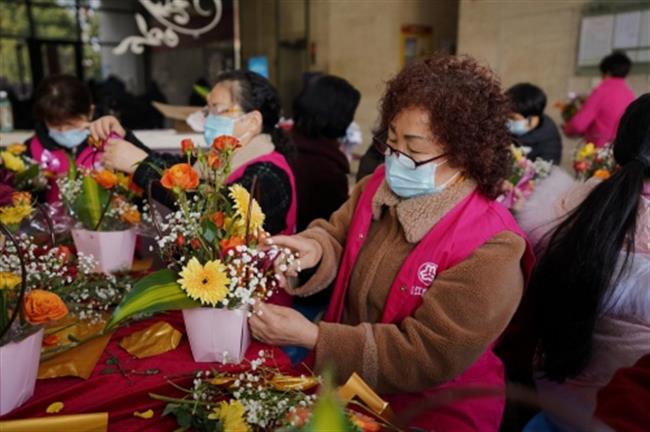 “花漾拾光馆”的活动现场花香弥漫,笑语满堂。花艺老师向大家详细讲解了花材养护与色彩搭配等专业知识并现场演示了插花技艺。演示过后,在花艺老师带领下,大家迫不及待地投入创作之中,充分发挥对美的想象力,享受着创作的乐趣,一修一剪间,一盆盆错落有致、造型独特的花艺作品就呈现在眼前。大家手捧着自己的得意之作,纷纷拍照留影,脸上洋溢着喜悦之情。