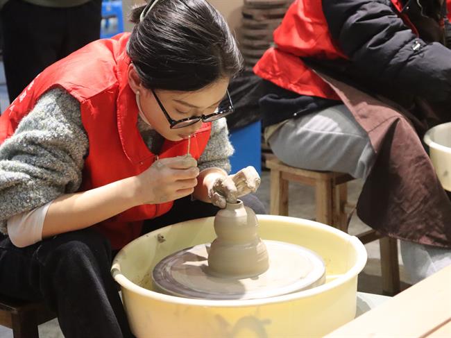 走进陶艺中心,接受了基础的培训后的“艺小匠”加入博物馆陶艺教学活动,教授体验者用揉、搓、压、捏等方式创作出独特样式,感受陶泥与水的交融,体会陶泥和指尖的温度。活动中,双方就长期志愿者活动合作达成初步合作意向,持续推动学雷锋志愿服务活动和非遗传承走深走实。