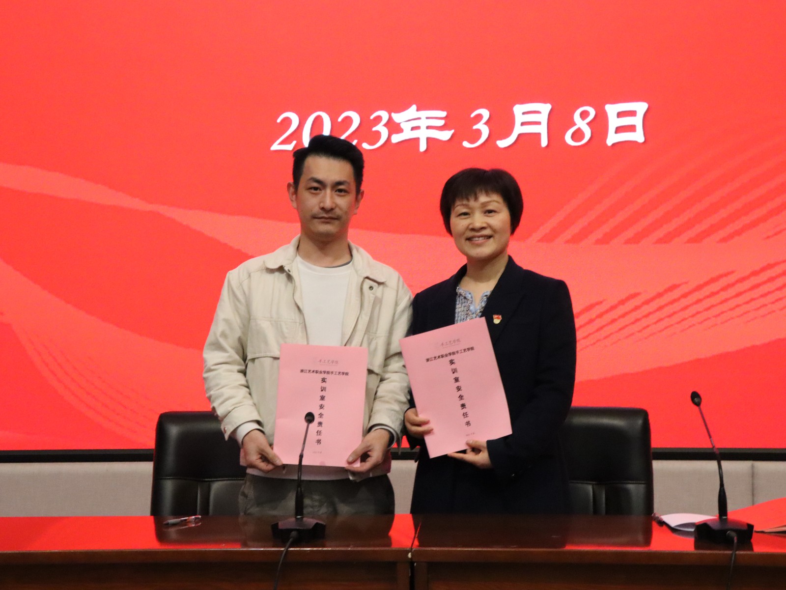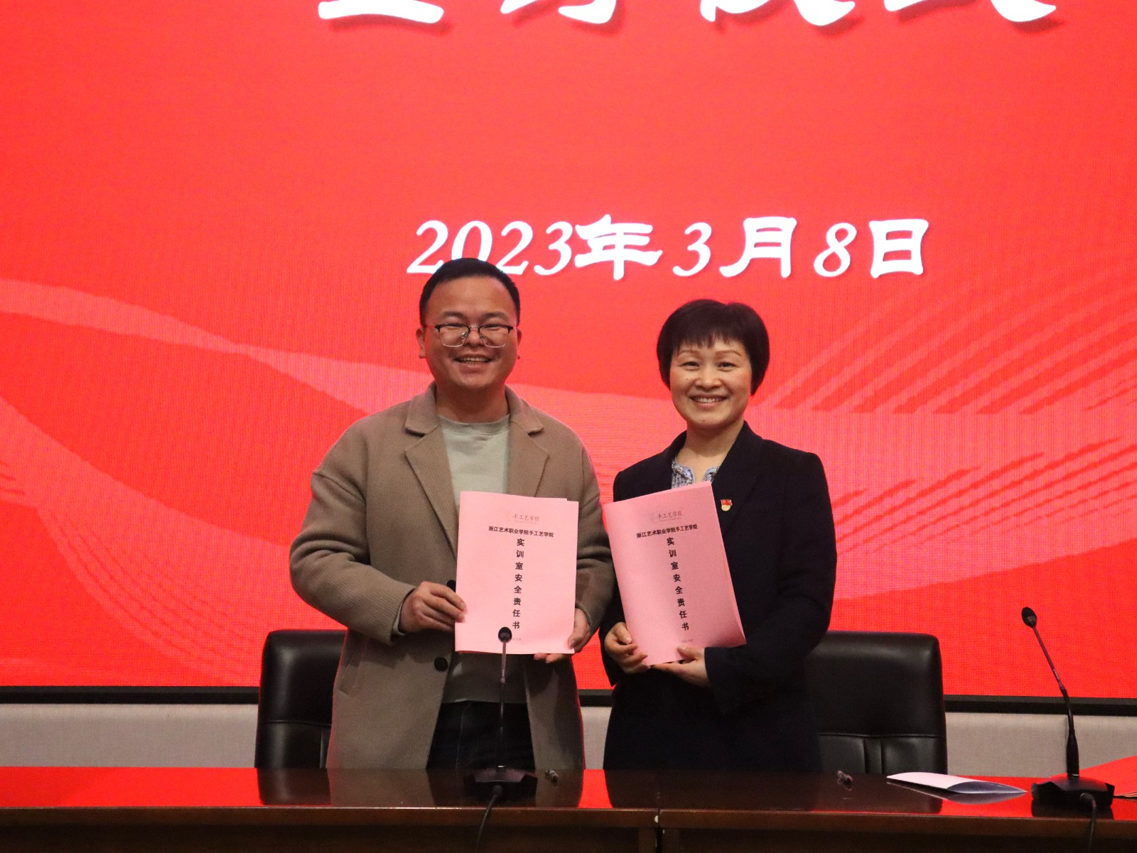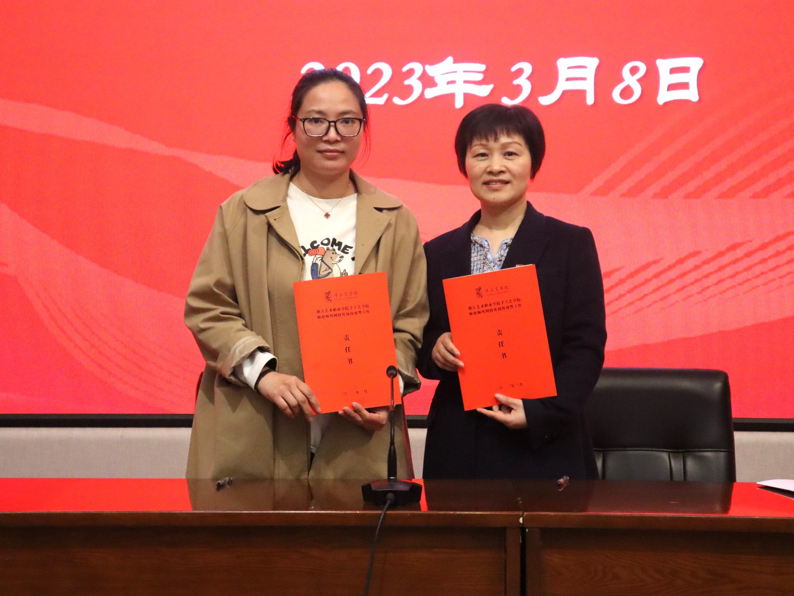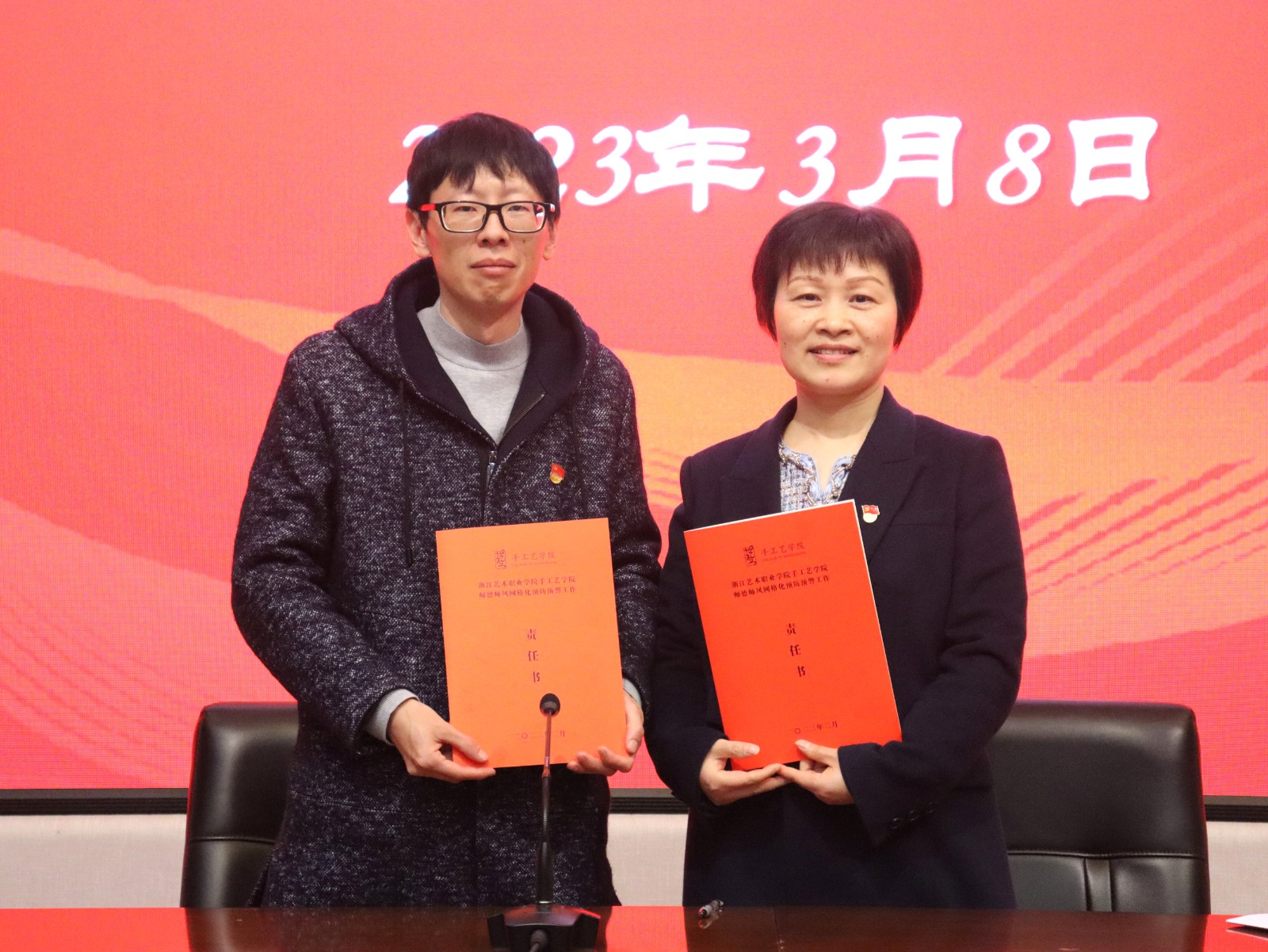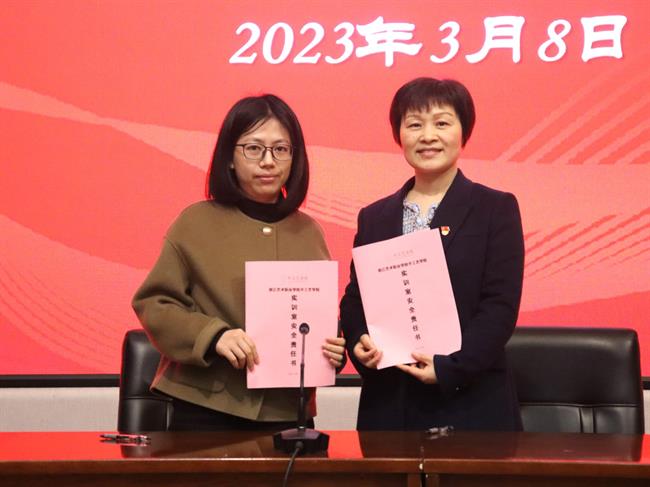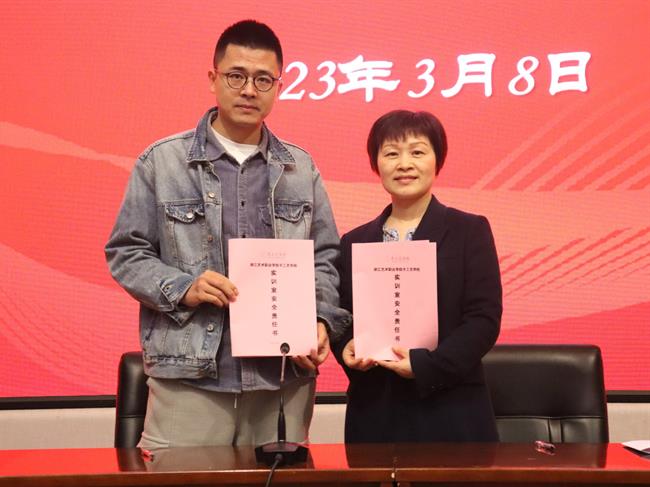 随后,学院举行师德师风网格化预防预警工作责任书签订仪式,党总支书记、副院长金银琴与相关教职工依次签订网格长责任书、实训室安全责任书和全面从严治党暨师德师风承诺书进一步强化网格管理机制,切实落地教师职责,将廉洁文化建设与立德树人紧密结合。