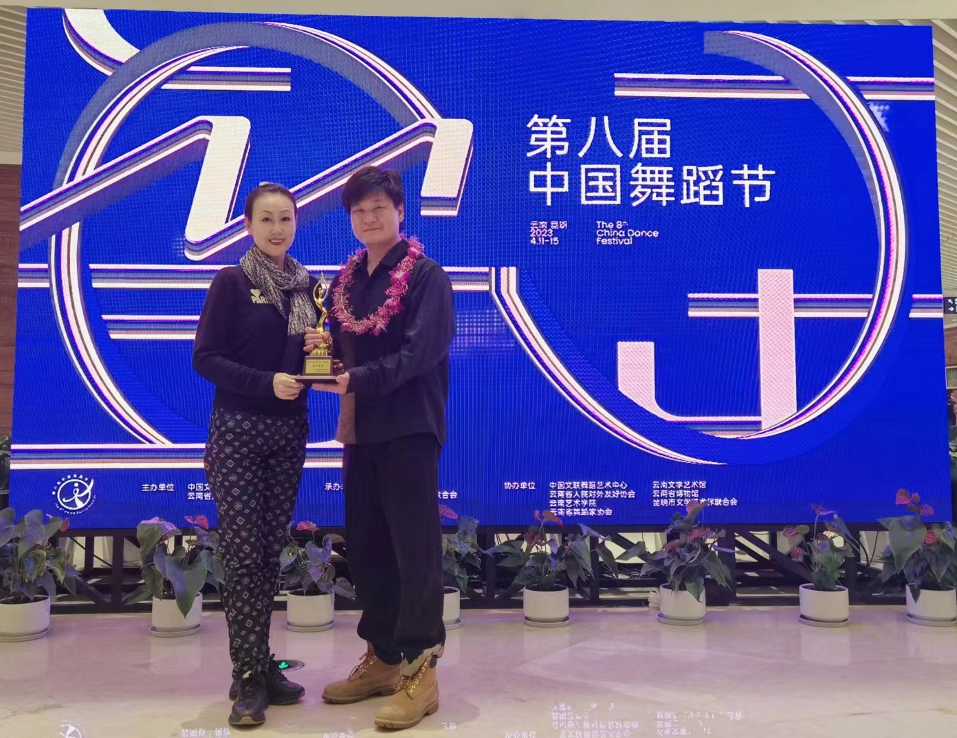 中国舞协副主席、云南省舞协主席杨丽萍,中国舞协分党组成员、秘书长夏小虎,云南省文联副主席、秘书长晏中为获得第十二届中国舞蹈“荷花奖”古典舞奖的作品代表颁奖。(1)_副本.png