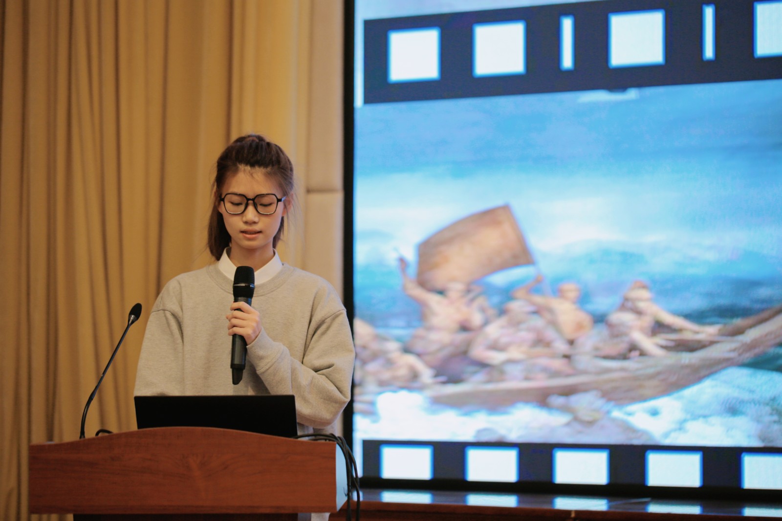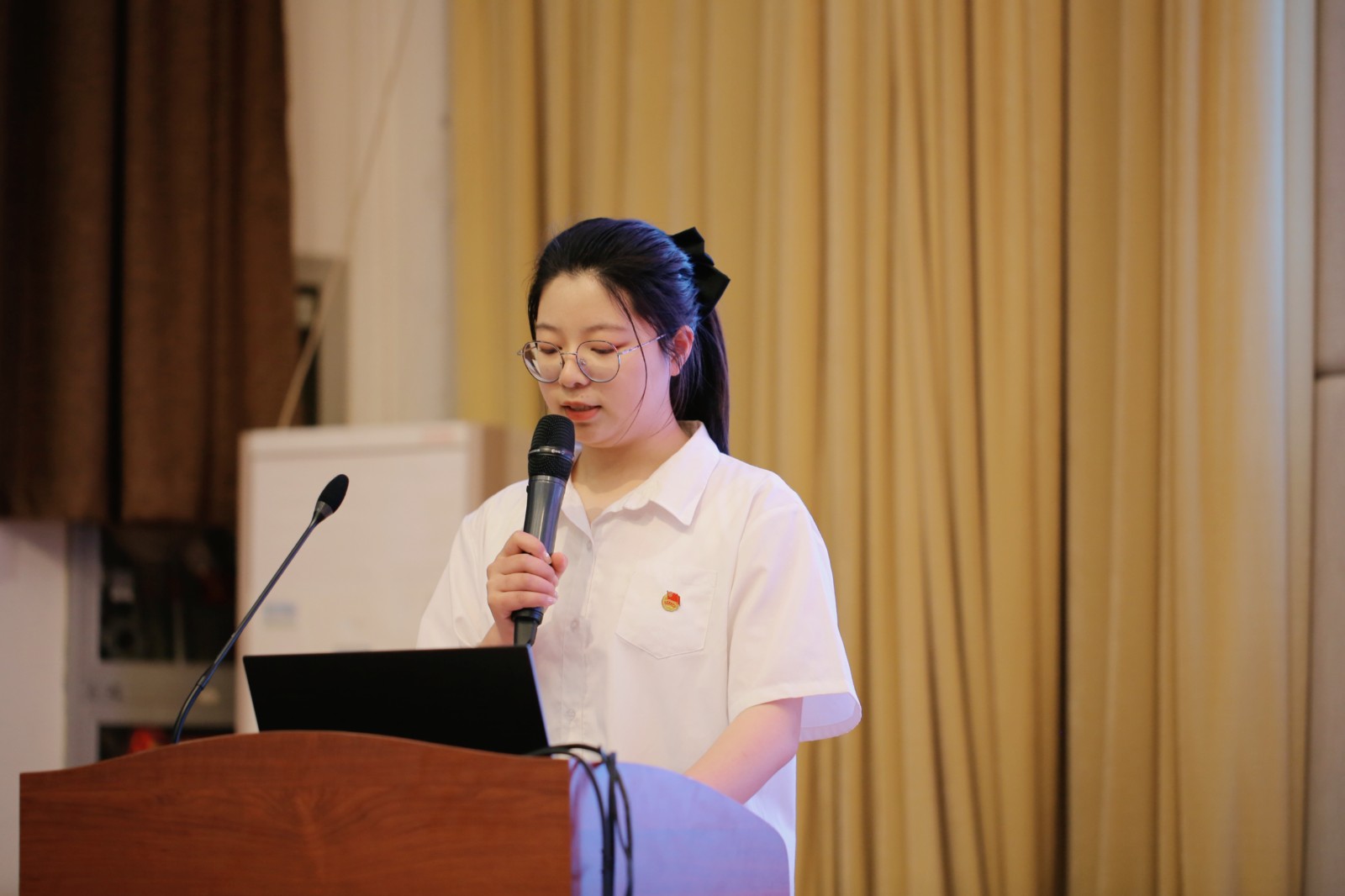 蒋敏君同学向大家生动地讲述了长征之路上战士们的颠沛流离,而在新时代的长征路需要靠青年们双手撑起,一起共赴美好的春天。