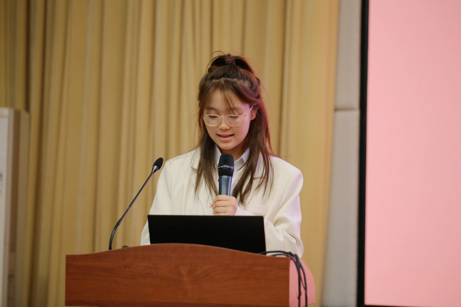 林妍洁同学从坚持读书与求学向大家讲述了读书的益处、读书的方法和读书的方向。她认为要养成终生读书的习惯,才能不断积蓄力量,并将自身价值投入到党和祖国的伟大建设事业中去。