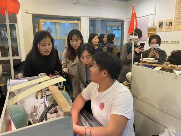 会前,一行人参观了上海工艺美术职业学院手工艺术学院及工艺美术研究中心大师工作室,对其办学理念、团队建设、专业设置、课程教学等情况进行了解。