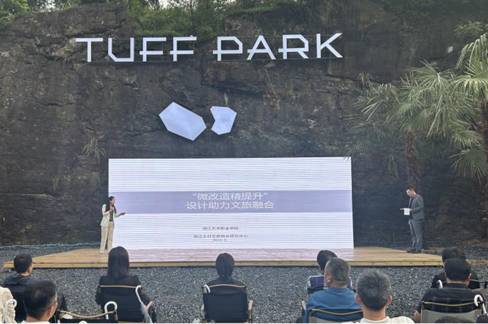 环境艺术设计专业教师周益向参会人员分享了带领大学生团队参与“微改造 精提升”的实践项目,旨在探索以赛事办实事,推动旅游业高质量发展,绘就共同富裕美好画卷。