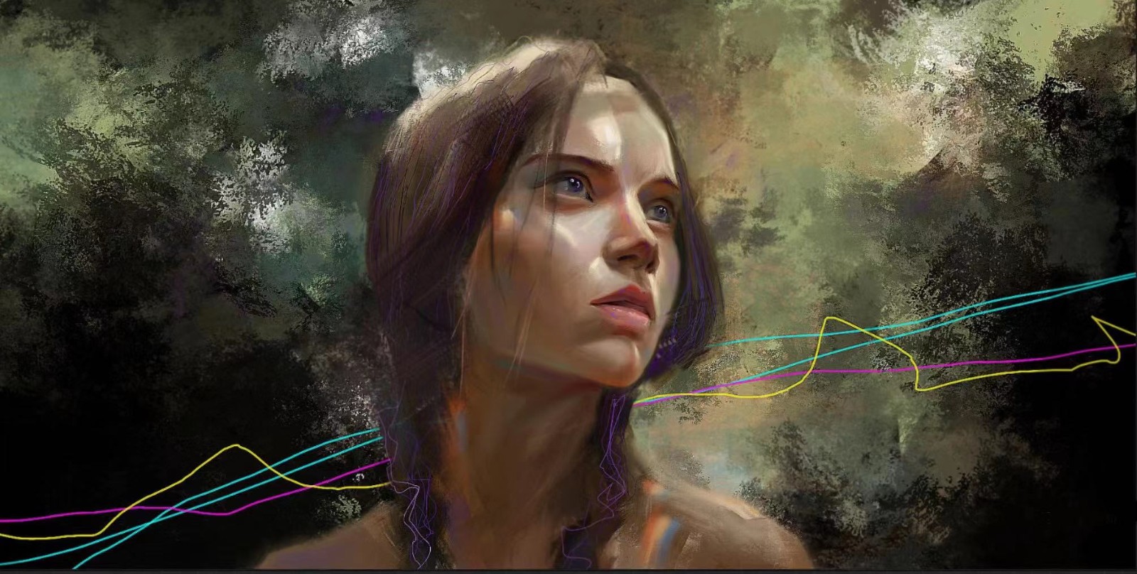 画面中的人物,半身没入黑暗,心却向着阳光。扭头的动作象征着她内心对光明生活的渴望和向往。她选择挣脱内心的枷锁,勇敢地走上光明大道。
