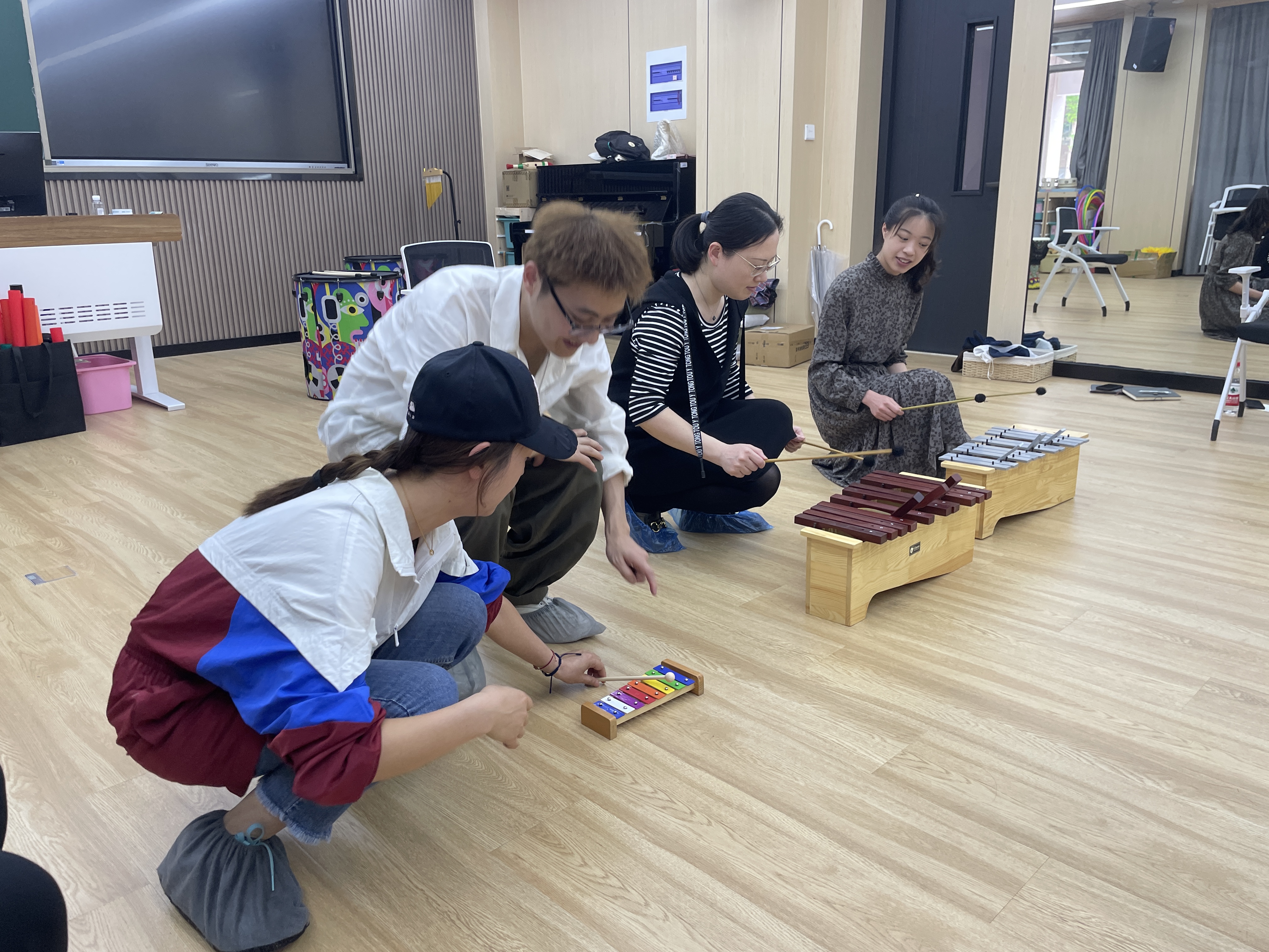 在培训中,高荣泽带领大家进行了嗓音造型、声势律动和乐器合奏等独具奥尔夫特色的音乐活动。在一次次嗓音、身体和演奏等多维一体的参与中,老师们沉浸式地感受着一首首乐曲从陌生到熟悉,到最后能够创编的音乐学习过程,同时也加深了对奥尔夫音乐教学模式的理解。高荣泽幽默风趣、活力四射、激情满满的讲解风格,给老师们留下了深刻印象。