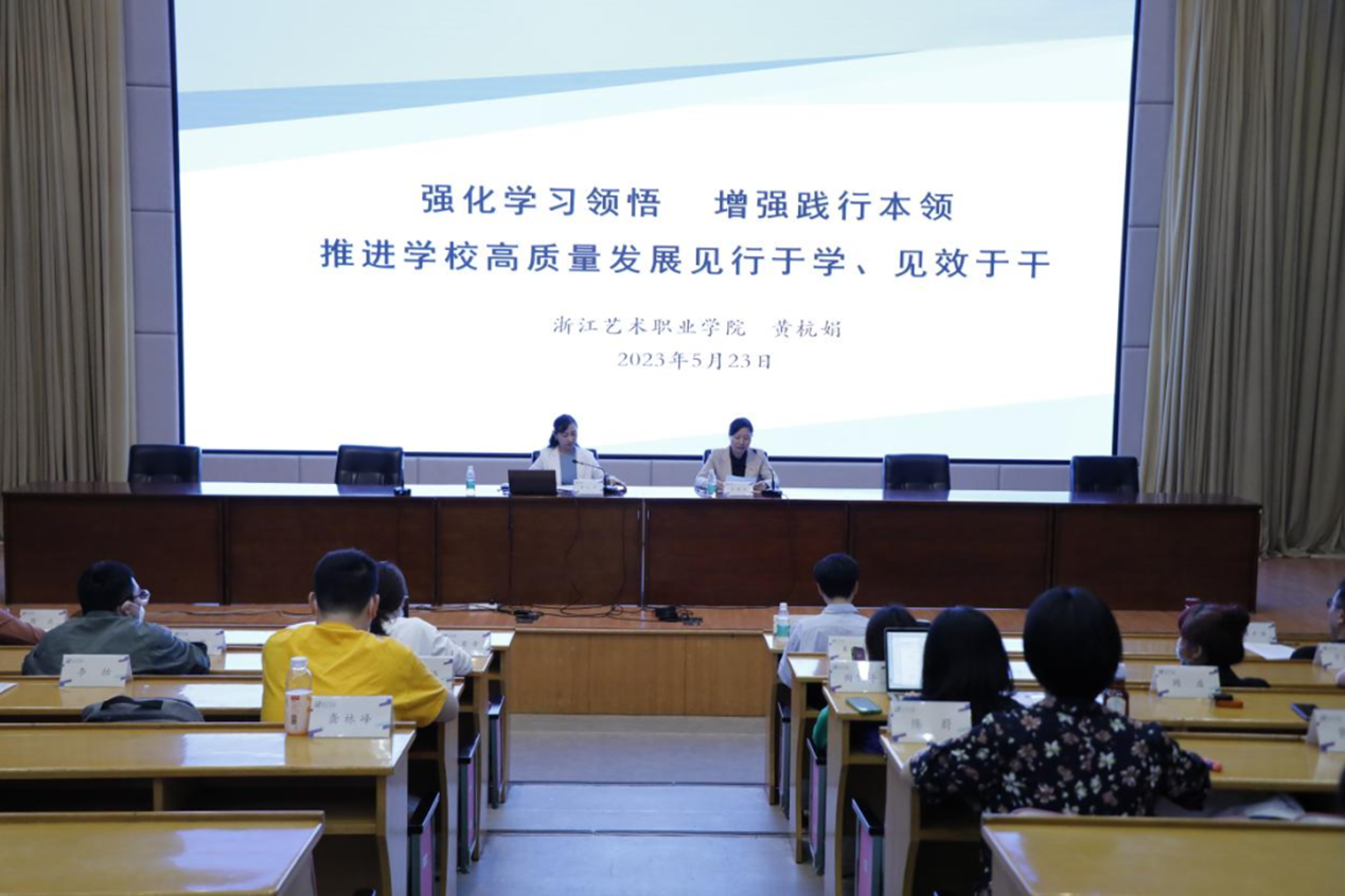 她指出,马克思主义使我们党拥有了辩证唯物主义和历史唯物主义的科学世界观和方法论,习近平新时代中国特色社会主义思想是当代中国马克思主义,是新时代坚持和发展中国特色社会主义的行动指南,要深刻领悟“六个必须坚持”蕴含的道理、学理、哲理,准确把握习近平新时代中国特色社会主义思想的世界观、方法论,坚持好、运用好贯穿其中的立场观点方法,为推动学校高质量发展实现新跨越、推进中国式现代化浙艺高职教育新实践提供坚强的政治思想保障。