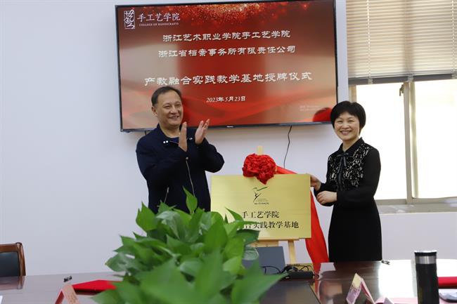 5月23日下午,手工艺学院与浙江省档案事务所有限责任公司(以下简称“省档案事务所”)举行校企合作签约仪式。浙江省档案馆副馆长胡元潮,浙江省档案馆技术保护处副处长(主持工作)雷飞,浙江省档案馆二级调研员陈红,省档案事务所执行董事、总经理金波,省档案事务所综合业务部部长吕永刚,省档案事务所综合业务部业务二组经理孙叶丽,手工艺学院领导班子及文物教研室教师出席签约仪式。手工艺学院副院长叶峰泉主持签约仪式。
