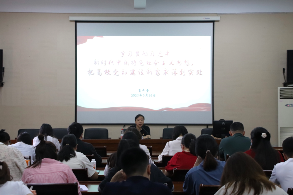 为认真学习贯彻习近平总书记重要讲话精神,牢牢把握“学思想、强党性、重实践、建新功”总要求,扎实开展学习贯彻习近平新时代中国特色社会主义思想主题教育,5月26日中午,校党委副书记夏开堂在13101会议室讲授专题党课。演艺与教育学院、人事处(教师工作部)、计划财务处、学生工作部(学生处)、工会、团委的全体党员教师参加。