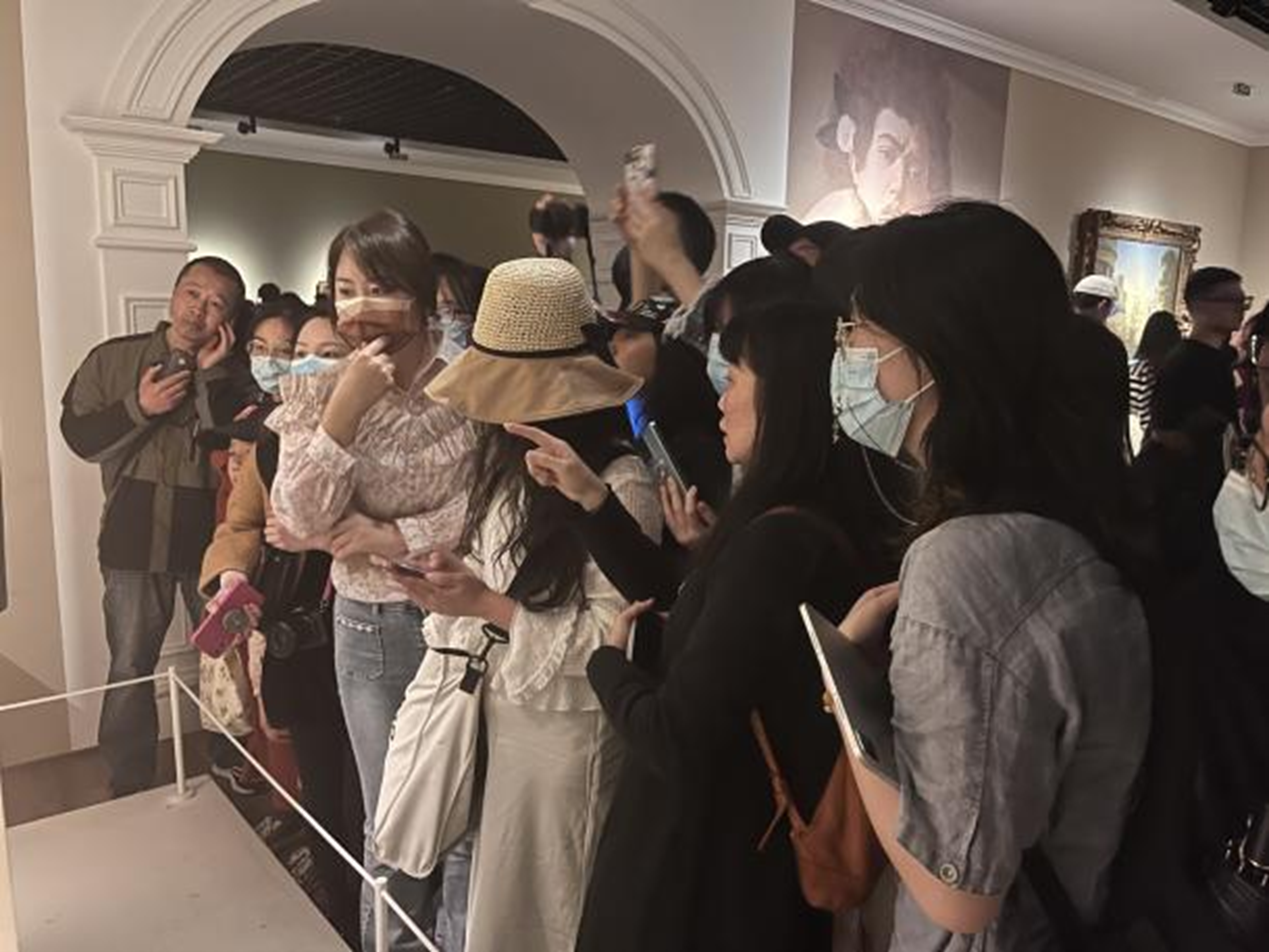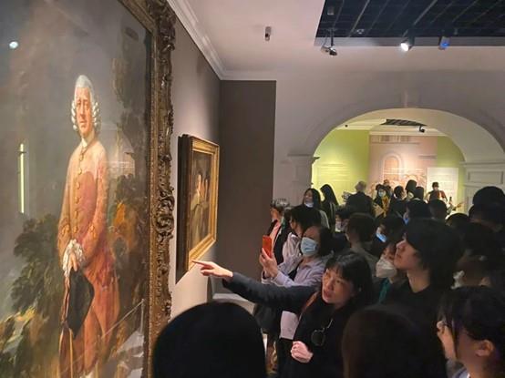 同学们经过三小时的车程,来到上海博物馆典藏展厅,近距离地欣赏世界级著名大师们的原作。在攒动的人群中,专业老师分头为学生们讲解着作品,学生们边看边探讨,聚坐在中央的凳子上还目不转睛地盯着墙上的画。同学们用心感受着每一件艺术作品背后的故事,欣赏着波提切利、拉斐尔、提香等艺术史中大师们的杰作,对于欧洲艺术流派从15世纪至19世纪的发展脉络有了深刻的认识。