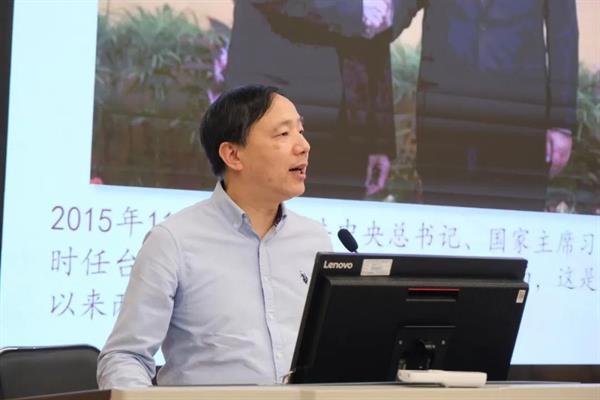 夏开堂以《在新时代新征程上推进祖国统一》为题从中共对祖国统一大业的光辉历程、祖国统一是不可阻挡的趋势、与时俱进的行动纲领等三个方面展开讲解。他详细讲解了在历史不同时期两岸统一的发展历程、阐述了祖国统一大业的必然趋势以及如今为完成祖国统一大业的实现路径。