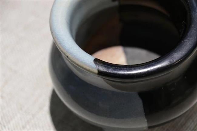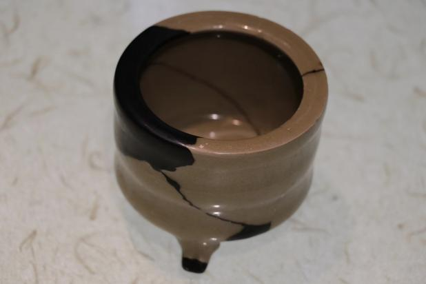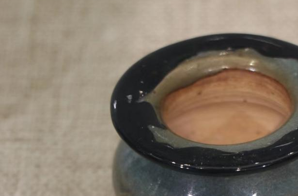 作品简介:行炉,造型古朴简洁。修复缺失的口沿之后,以黑漆装饰,呈现质朴质感。