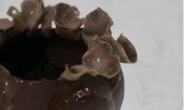 作品简介:创作灵感来源于景德镇的一个作品展,主要以烧成后坚硬的瓷器表现出花叶的生机与柔软感,结合修复器物的残破形态,宛如从伤口长出来的一般,给予器物生命力。