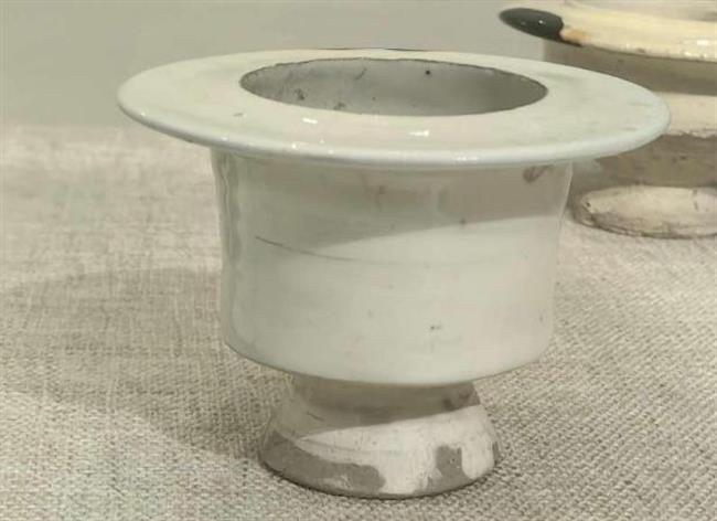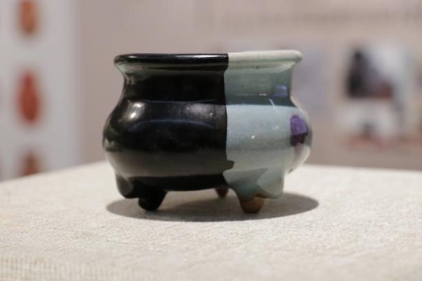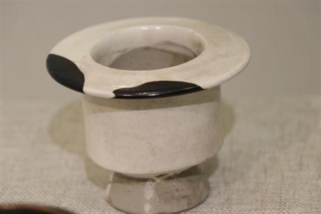 作品简介:当阳峪窑烧白釉、酱釉、绞胎及白釉釉下彩绘划花和剔花等瓷器,以白釉为主。此次修复的是两只白瓷行炉,造型古朴简洁,修复缺失的口沿之后,以黑漆装饰,呈现质朴质感。