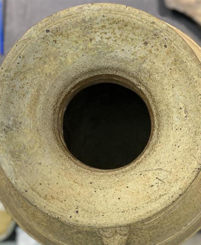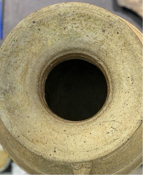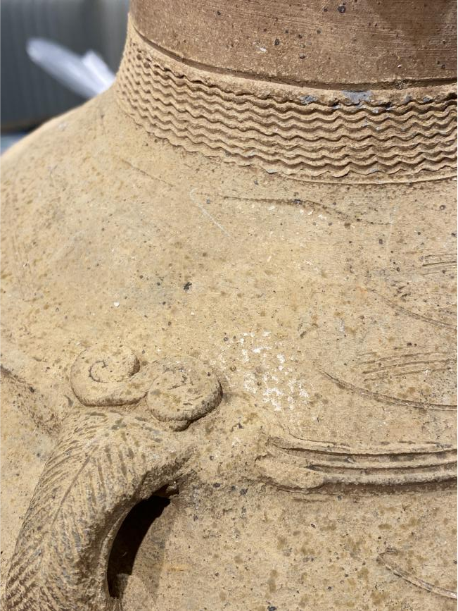 作品简介:该器物口沿部位整体缺失,通过查找、参考同时代器型,以博物馆展示修复形式对其进行修复、复原。