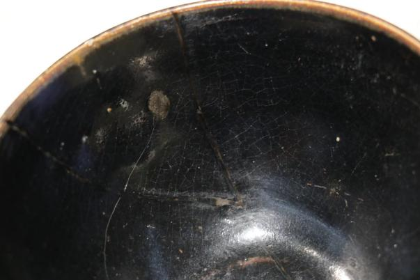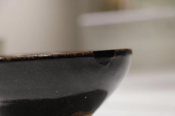 作品简介:宋代蔡襄《茶录》记载:“茶色白,宜黑盏,建阳所造者绀黑,纹加兔毫,其坯微厚,热难冷,最为要用。”福清窑即为建窑下的一个窑口,福清窑茶盏,可以算是饮茶利器。为了保证实用,采用天然大漆材料修补。