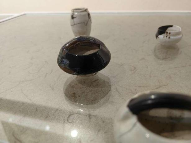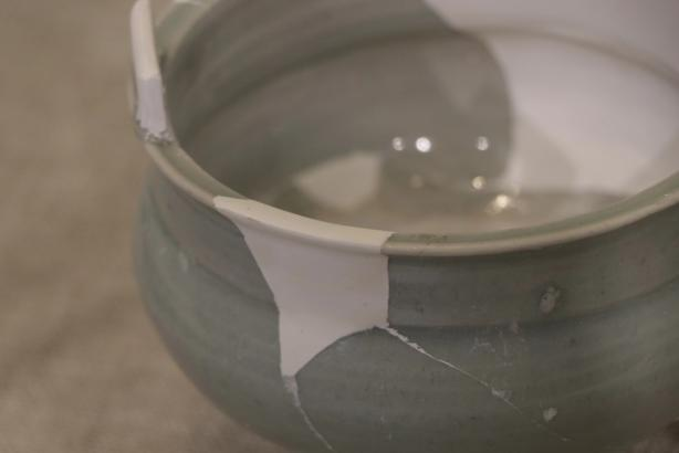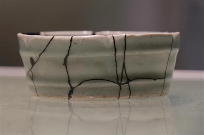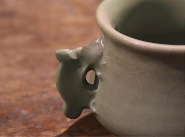 作品简介:其修复方式源于作者对宋韵的理解,认为宋韵的气质在于谦逊素雅,无需太过华丽,简单却不单调。使用大漆工艺对器物缺口修复出素雅的效果,选取的器物也偏素雅,颜色为同一个色系的青釉,在作者看来,青色更能体现出雅的韵味。
