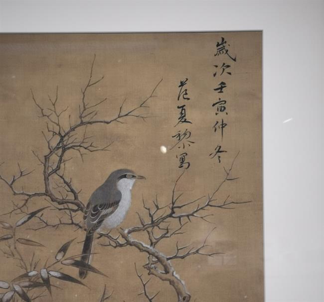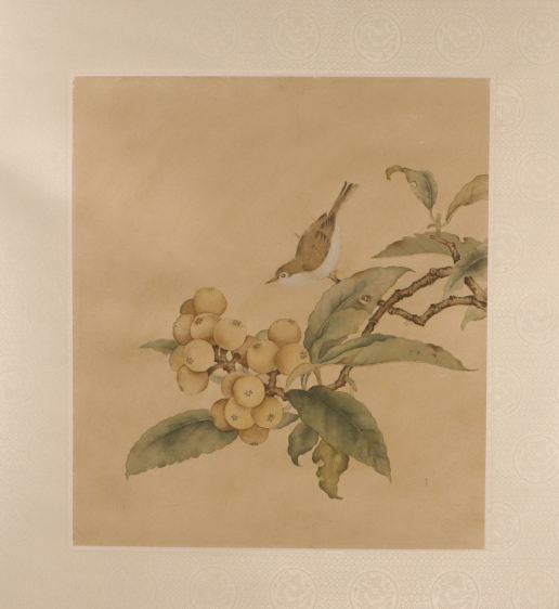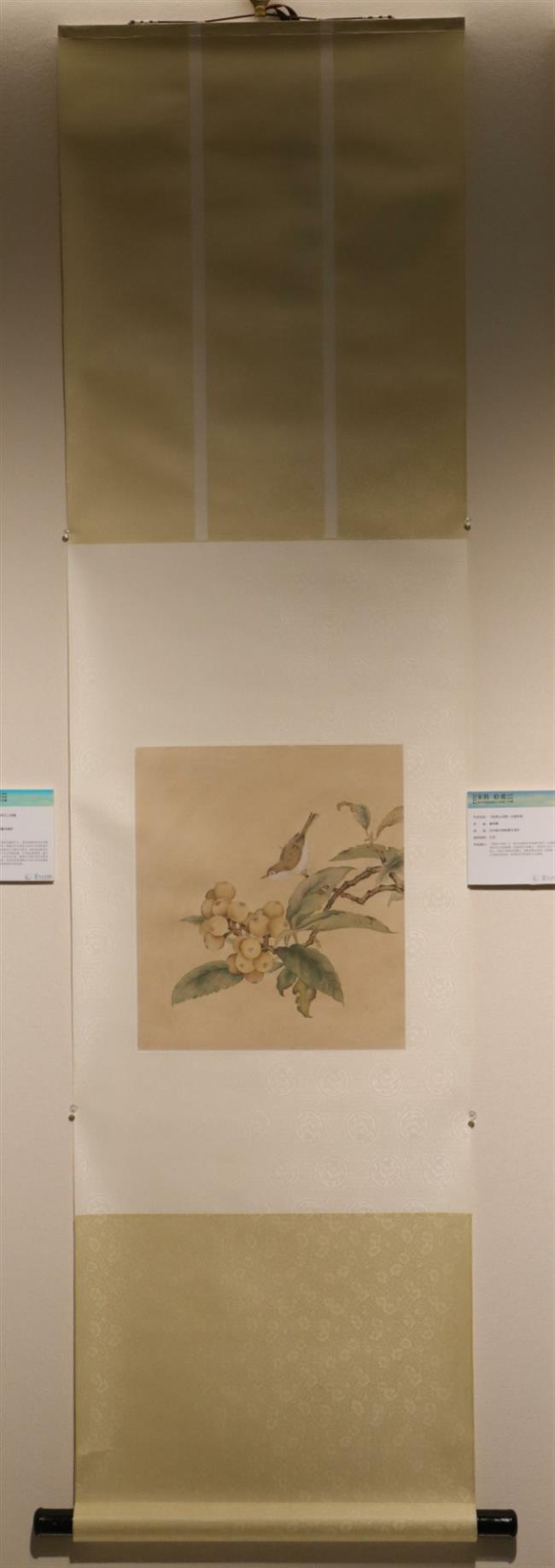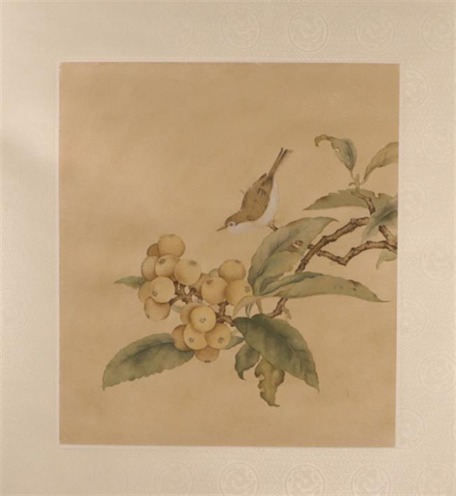 作品名称:《枇杷山鸟图》立轴装裱