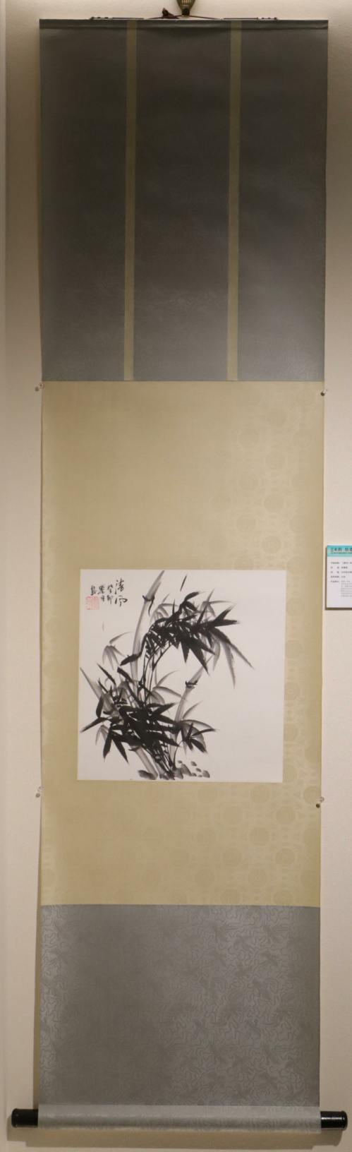 作品简介:挖镶二色裱。以墨笔勾勒的竹子,将线条的轻重变化和墨色的深浅运用自如。画面中竹子的枝干和叶子巧妙的排列着,表现出细腻而富有生气的竹子形态,同时也反映出中国传统文化中竹子作为节操坚强、气节高洁的象征。墨竹既有自然之美,又有文化之韵,既能令人感受到艺术家对自然的赞美和热爱,也向我们传递着古人对生命中的坚韧不拔品质的向往和崇敬。