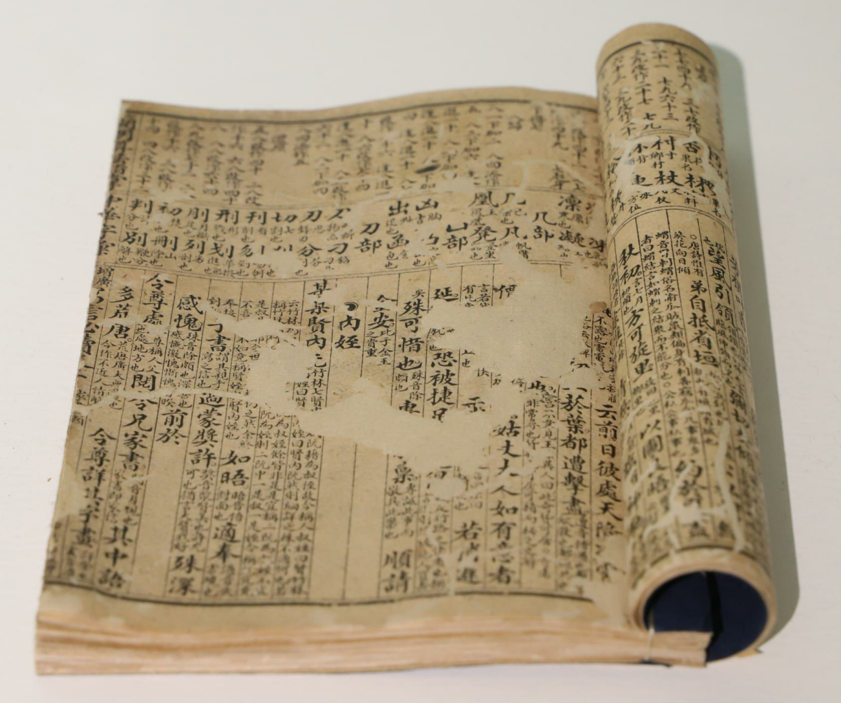 作品介绍:清代《简明算法指掌.增广唐著写信必读.中华字汇通书》,该清代古籍的三方面内容合集本。上栏是《简明算法指掌》,中栏是《中华字汇》,下栏是《增广著写信必读》。该书破损严重,有较多的虫蛀和霉烂,我们运用托裱和隐补的方法将其修复完成并装订成四孔线装书。就我们而言,不只是修补破损古书、实现对公共财物的保护,更是体现区域文化综合水平提高的表征。这些较深层次的意义希望能激发出当代人的文化自豪感和责任心,从一个侧面促进了古籍事业的发展,并协助了阅读推广的实现。