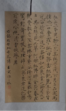 作品简介:这两幅作品分别为《楷书:临赵佶<牡丹花诗>》和《行草创作:白牡丹》。楷书运用了宋徽宗赵佶的特定瘦金体,特征是笔画细瘦,在转折处,将藏锋露锋运转提顿痕迹保留下来,成为瘦金书的基本笔画架构。如写一横,起笔处是尖,先斜下,而后横行,收笔留有一顿点,即是特点之一。结体虽楷,而整体运笔,大都直来直往,飘忽快捷,似行如草,行笔尽显帝王气派。以此书法临写赞美牡丹之诗。