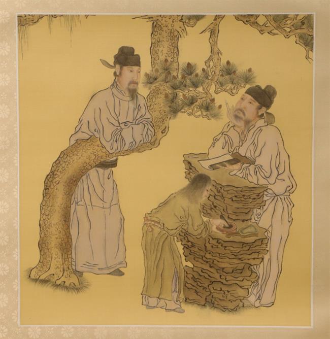 作品名称:《四学士图页》三色裱