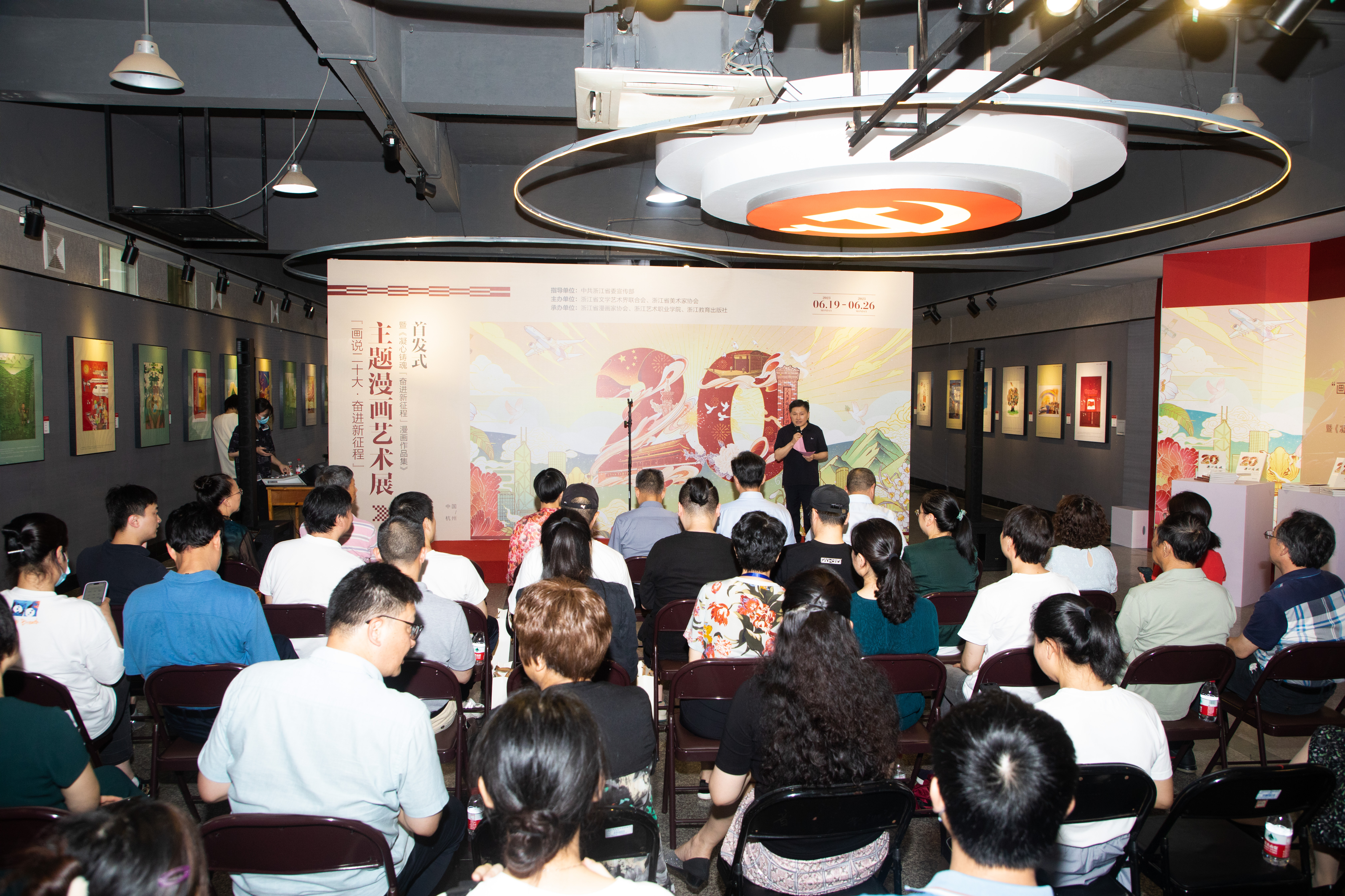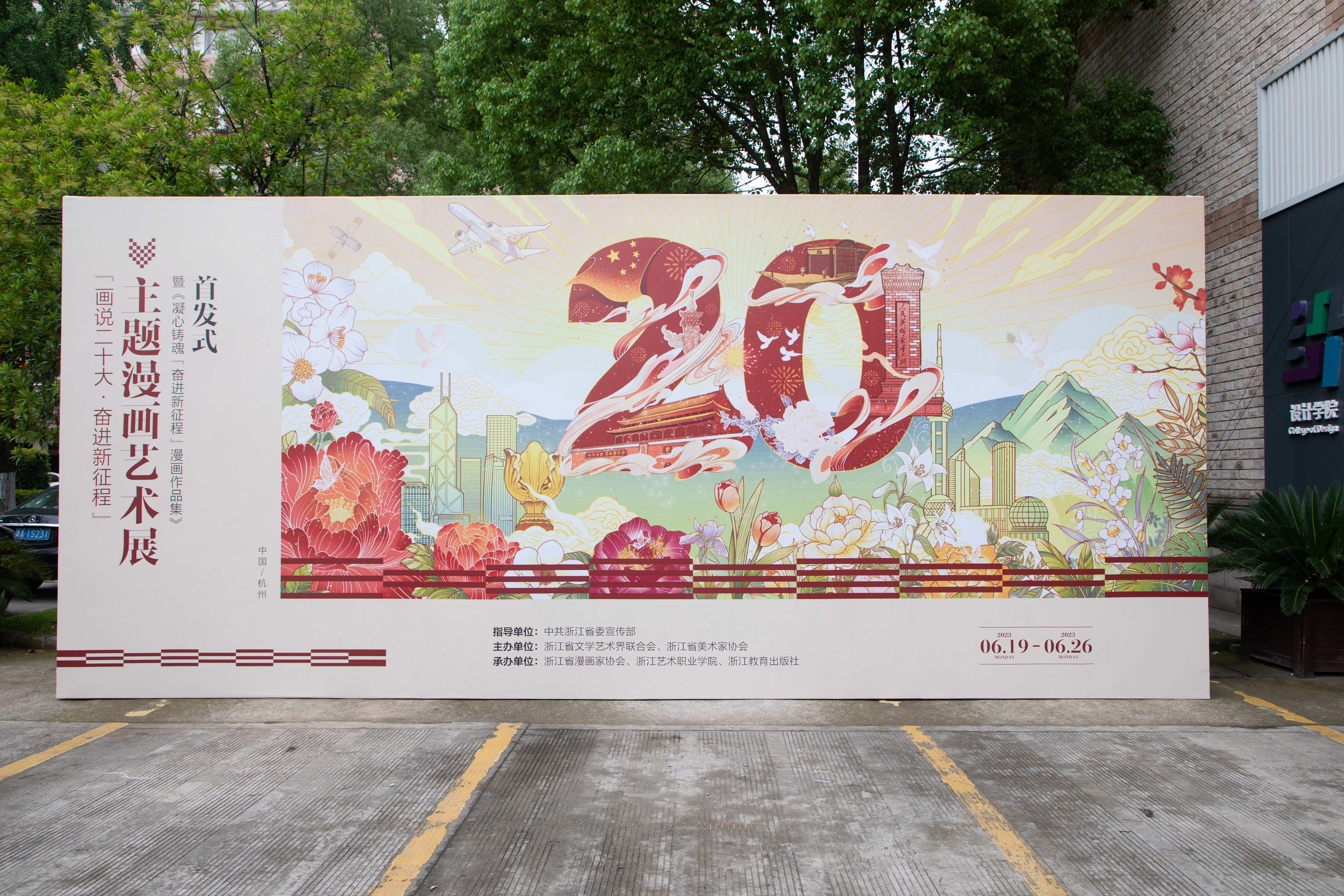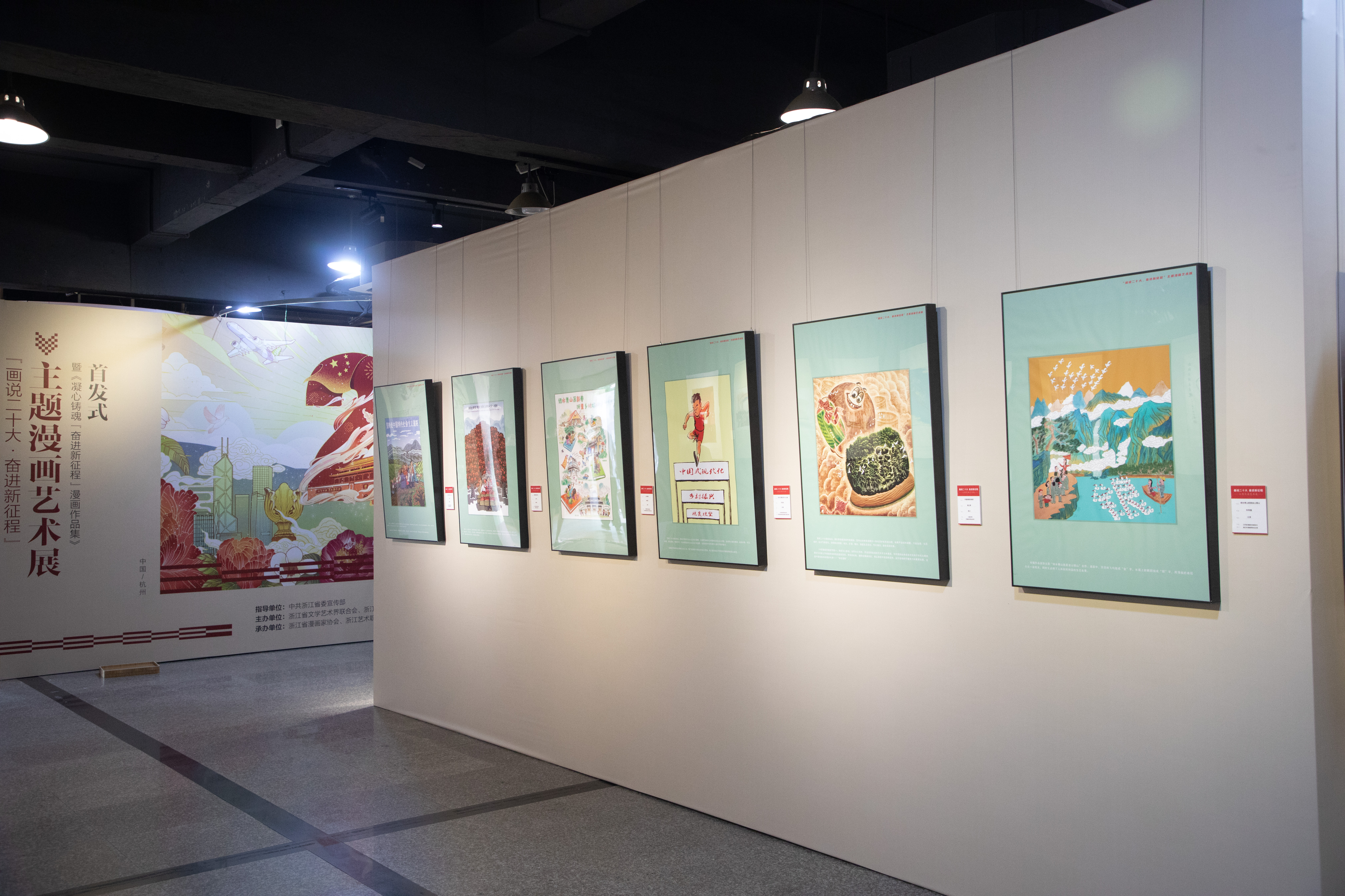 用漫画艺术宣传中国共产党全国代表大会精神,这在浙江历史上是第一次,在全国也是首创。本次展览集中展示了来自21个省(市、区)的知名漫画家创建的风格各异、形式多样、内涵深刻的60余幅作品,既有传统漫画,也有绘本插画,还有数字绘画,从不同的视角将党的二十大精神内容刻画得更富新意境,彰显出更具形象感。
