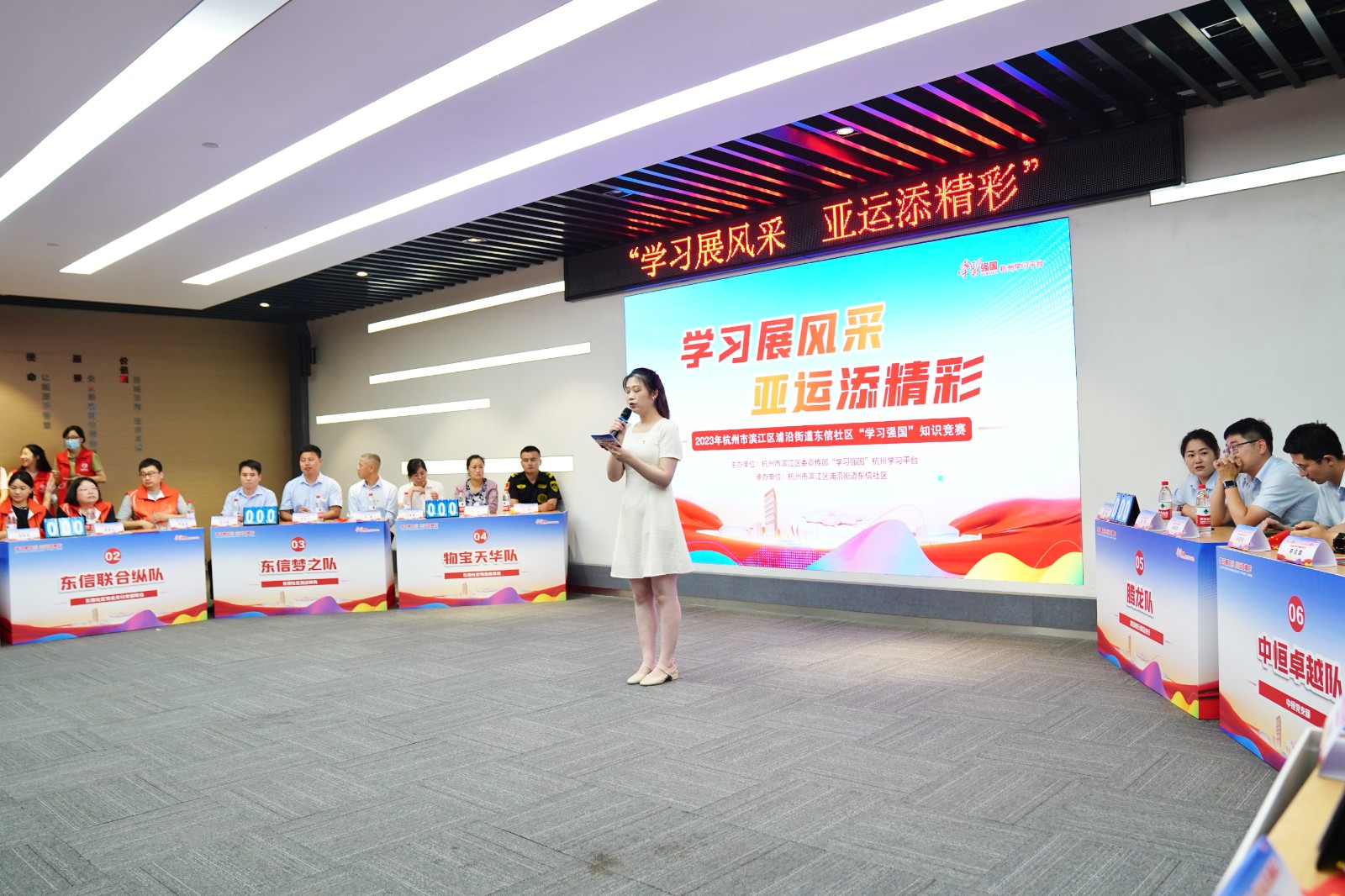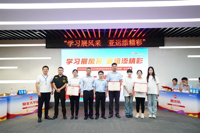 为深入学习宣传贯彻党的二十大精神,学好用好“学习强国”学习平台,共庆杭州亚运会的到来,6月15日,手工艺学院参加了在中恒大厦举办的“学习展风采 亚运添精彩”2023年杭州市滨江区浦沿街道东信社区“学习强国”知识竞赛。